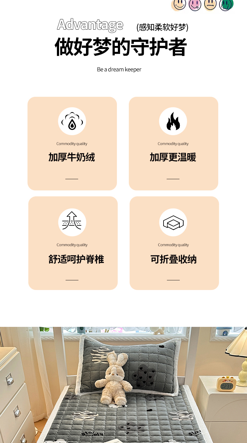 当前位置: 91家纺网 > 商品网购 > 床垫/床褥 > 普通床垫 > 川悦生活 2025新款A类印花牛奶绒床垫加厚绒保暖床床褥 床垫星心小猫