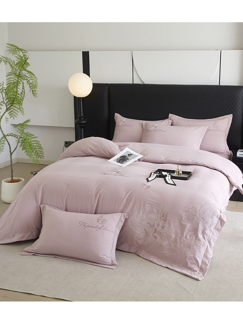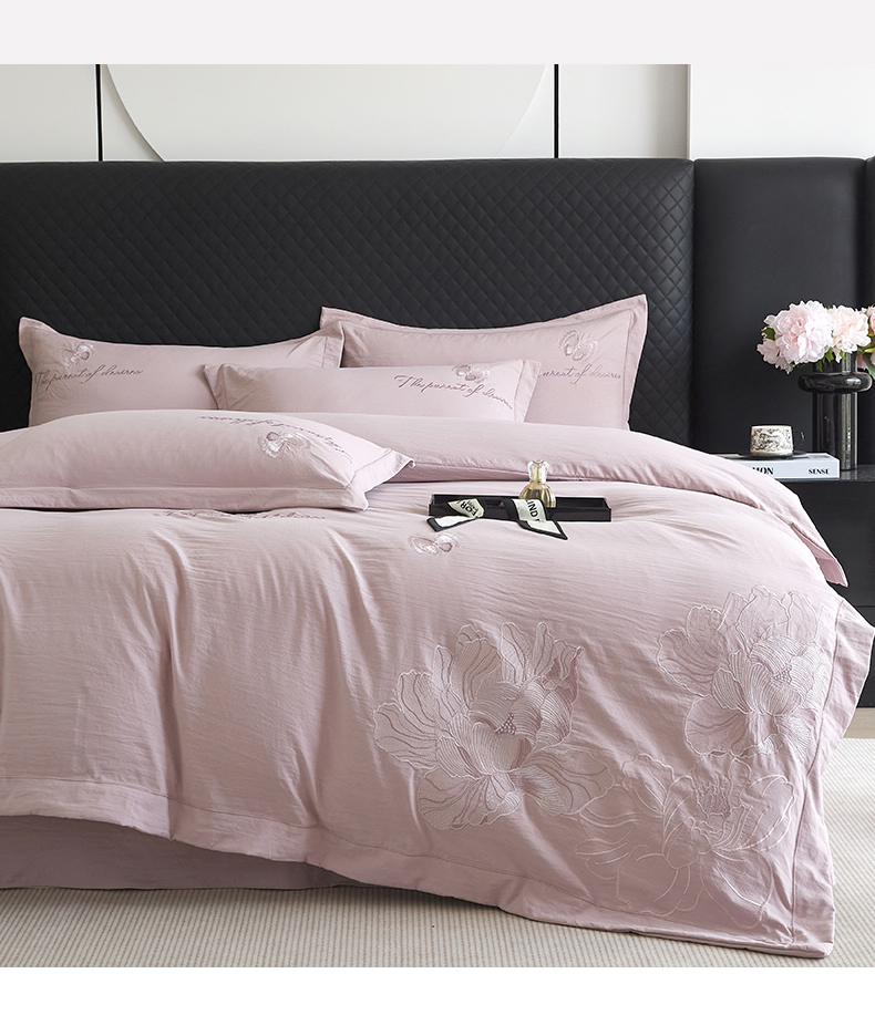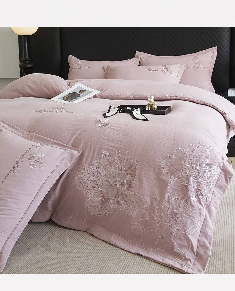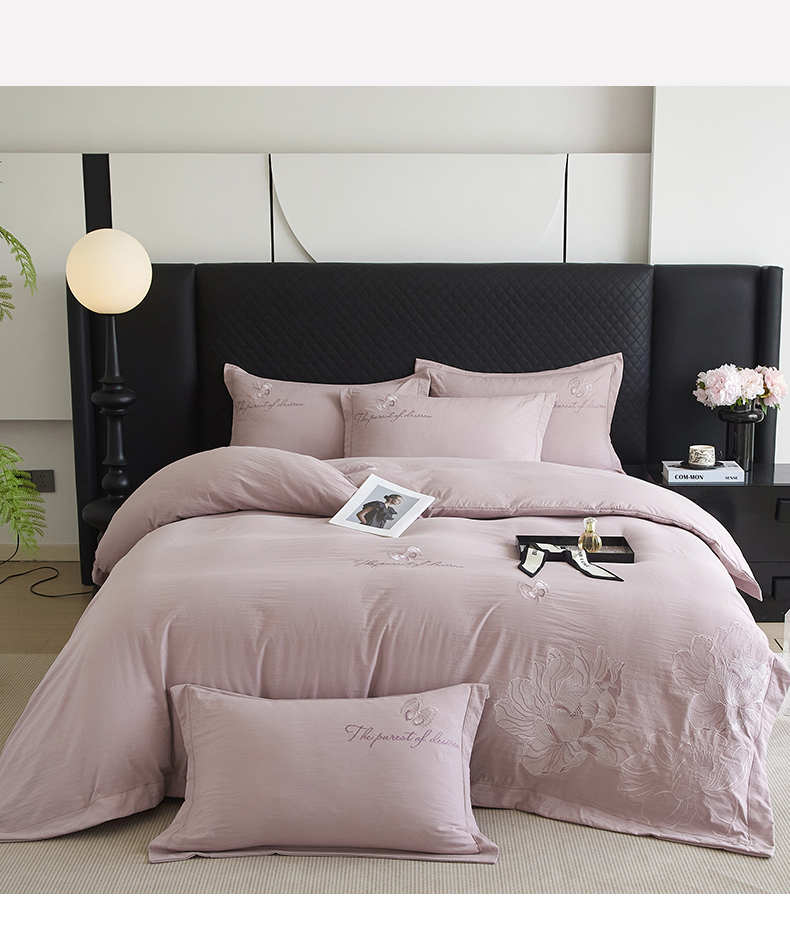 金纱玉纺家纺 2025新款水洗棉工艺刺绣四件套 沁颜花开-紫豆沙