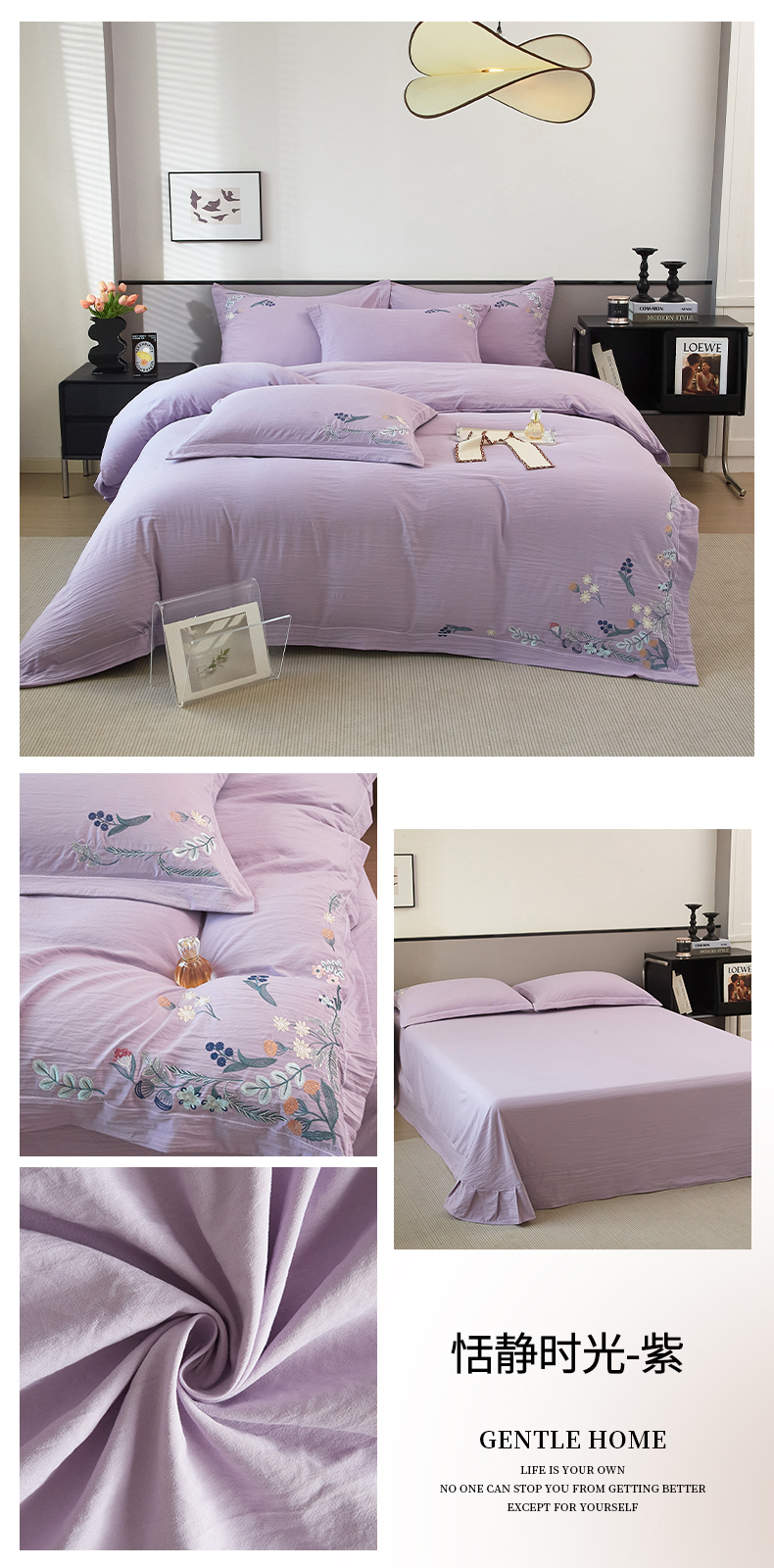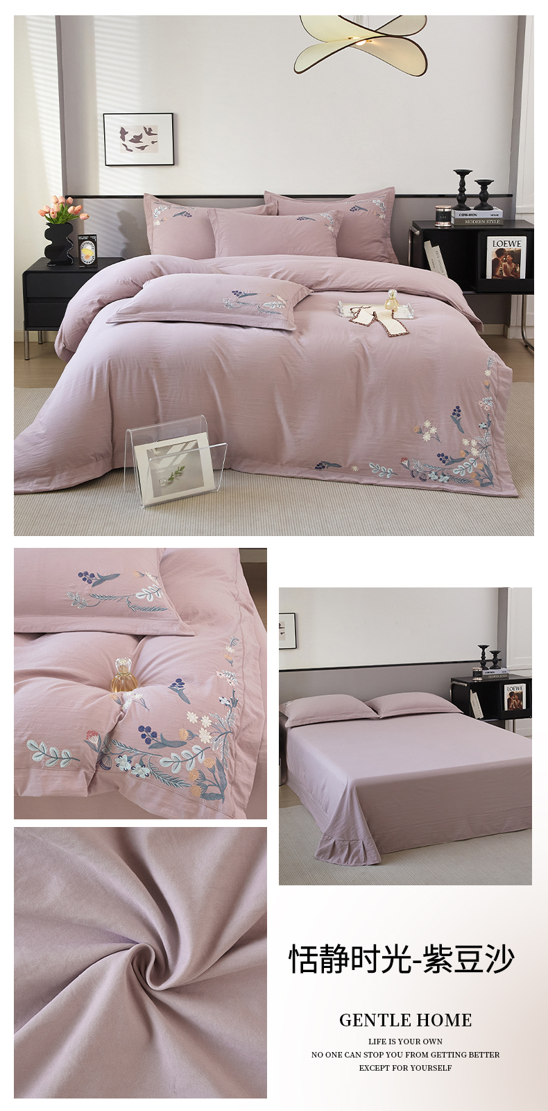 (总)金纱玉纺家纺 2025新款水洗棉工艺刺绣四件套,沁颜花开-宾利蓝,沁颜花开-豆绿,沁颜花开-粉豆沙,沁颜花开-中灰,沁颜花开-紫,沁颜花开-紫豆沙,恬静时光-宾利蓝,恬静时光-豆绿,恬静时光-粉豆沙,恬静时光-中灰,恬静时光-紫,恬静时光-紫豆沙