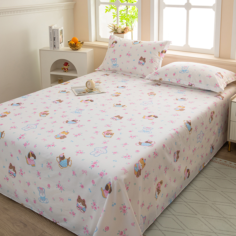 雨萝家纺 新款12868全棉纯棉床单 小奶狗