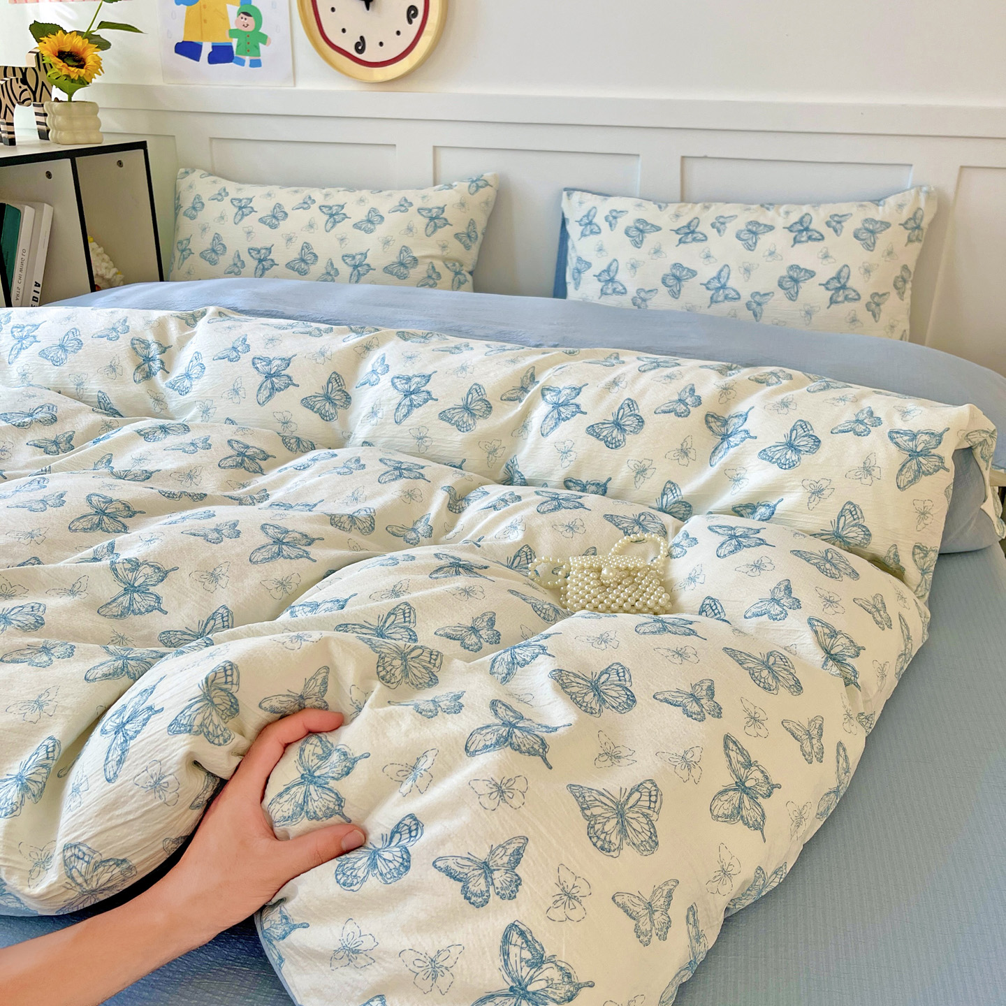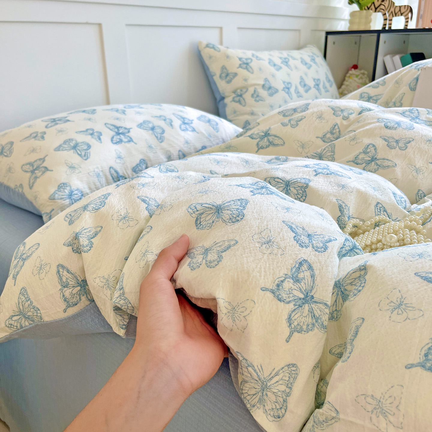 当前位置: 91家纺网 > 商品网购 > 床品套件 > 四件套 > 双层纱四件套 > 王朝国际 2026新款爆款云感亚麻有氧双层纱皱皱双层纱四件套 蝶舞