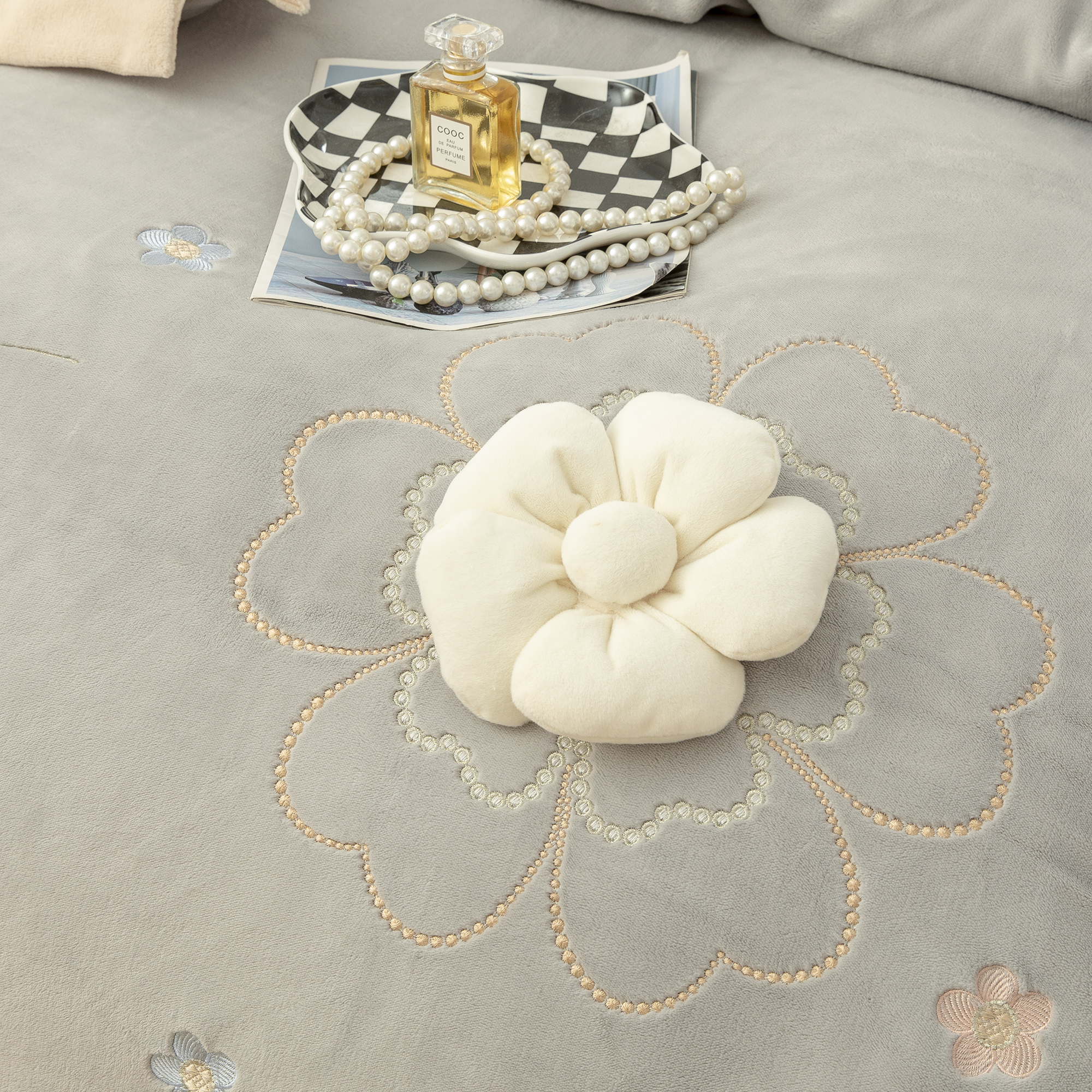 贝尔 2025新款花之语-纯色高克重全消光蚕丝绒(赠送拎袋)-段角刺绣四件套 银灰