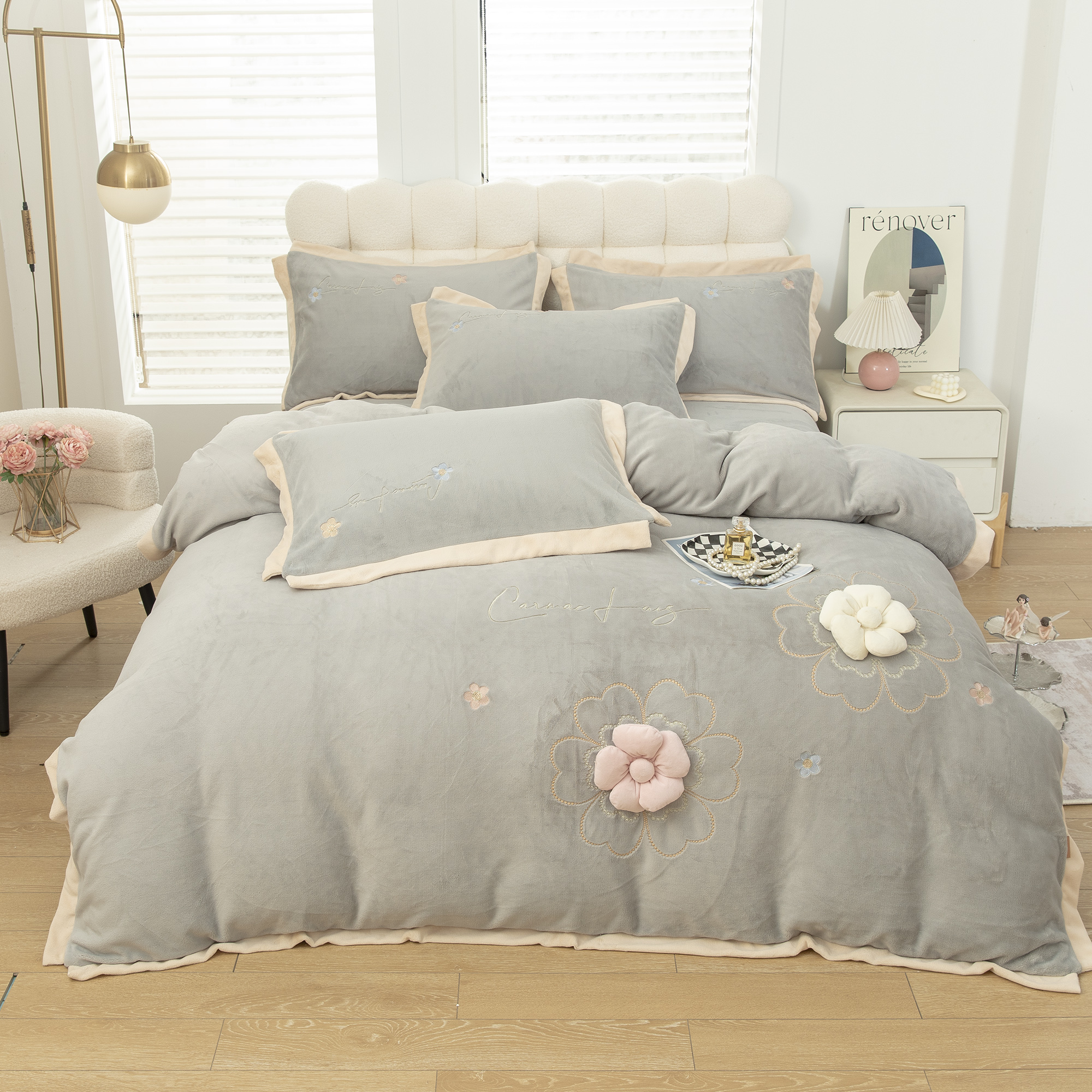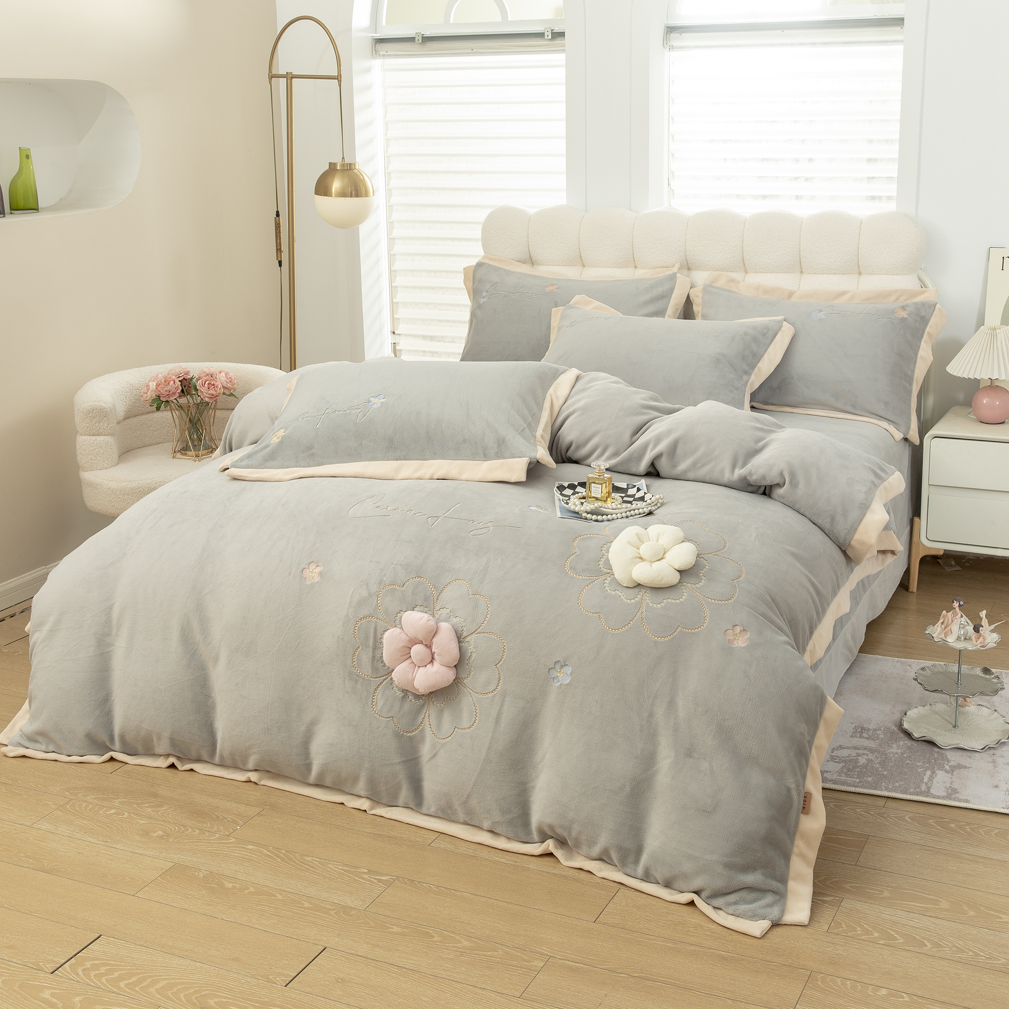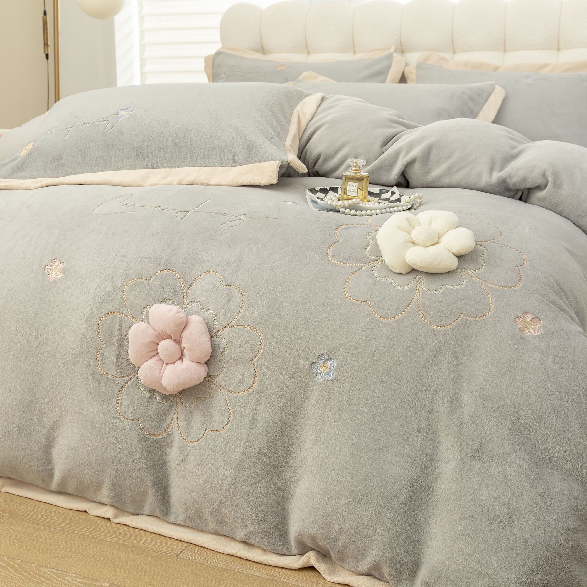 (总)贝尔 2025新款牛奶绒刺绣四件套-花语系列,花语-豆沙,花语-粉色,花语-高级灰,花语-蓝色,花语-浅绿,花语-玉色