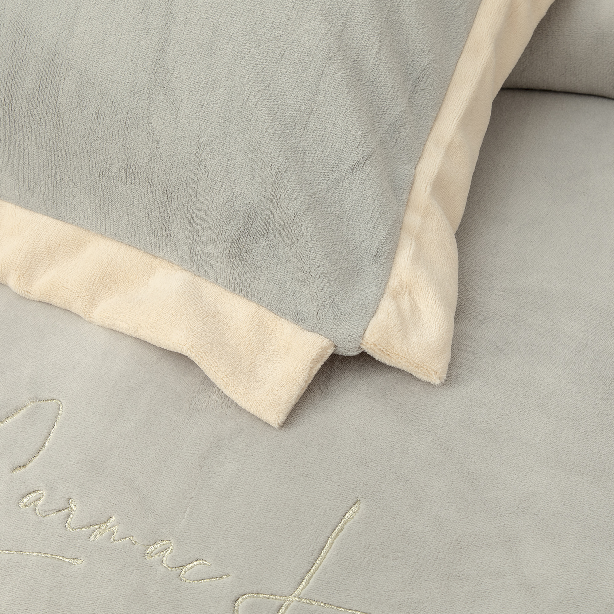 商品名称:贝尔 2025新款花之语-纯色高克重全消光蚕丝绒(赠送拎袋)-段角刺绣四件套 银灰