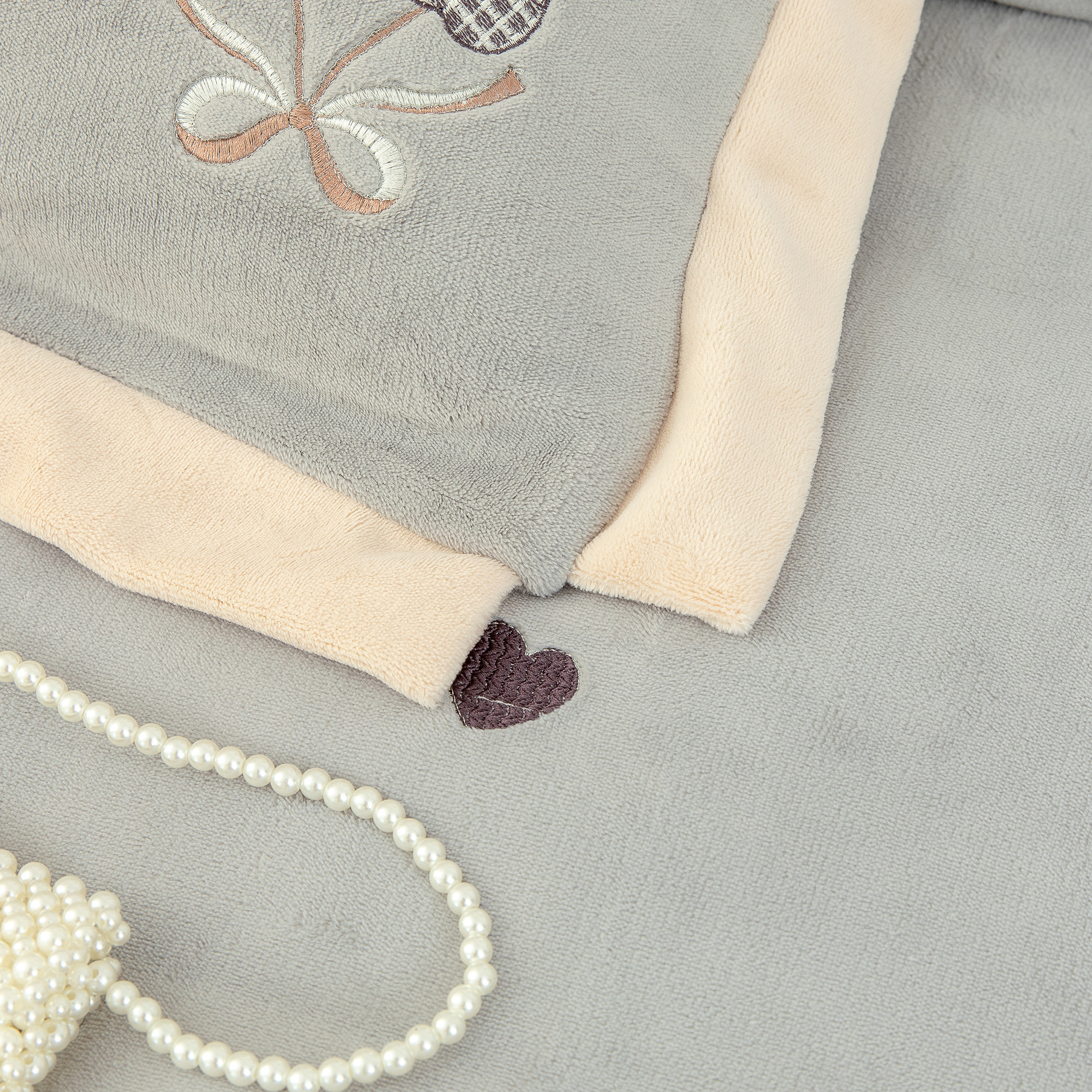 贝尔 2025新款甜蜜樱桃-纯色高克重全消光蚕丝绒(赠送拎袋)-段角刺绣四件套 甜蜜樱桃-银灰