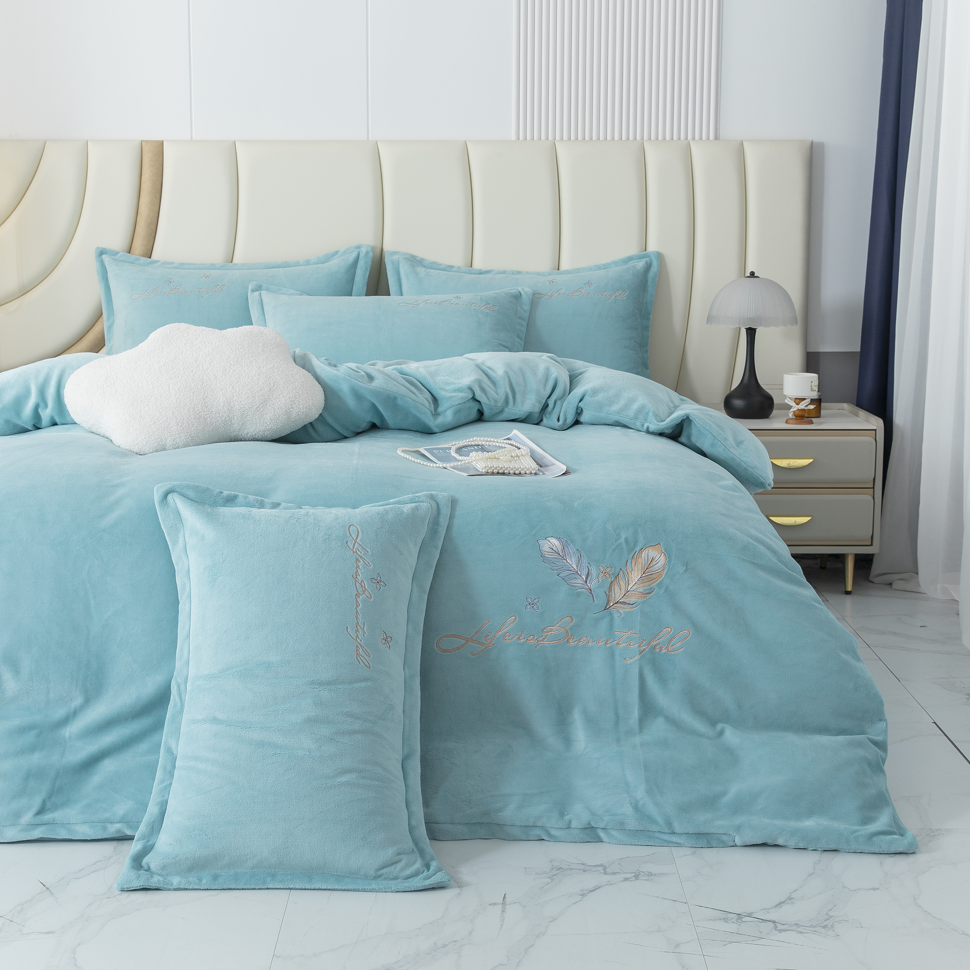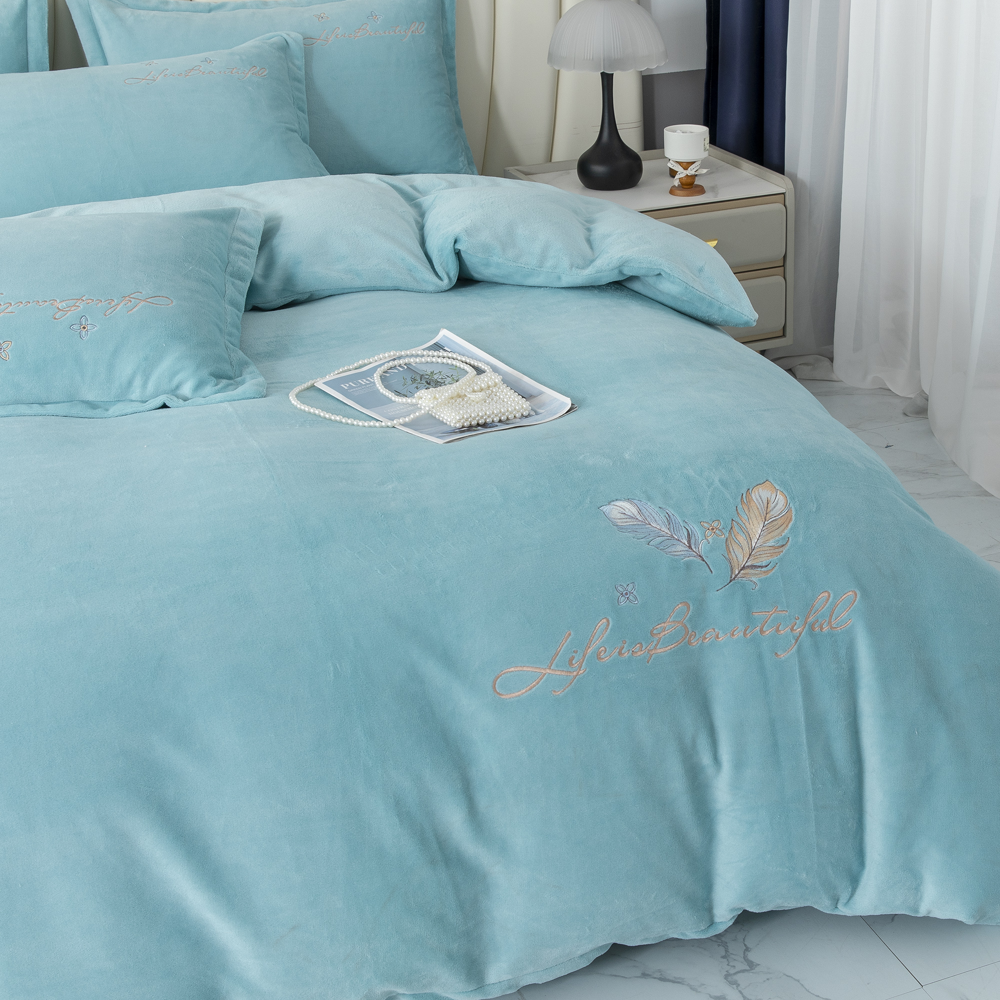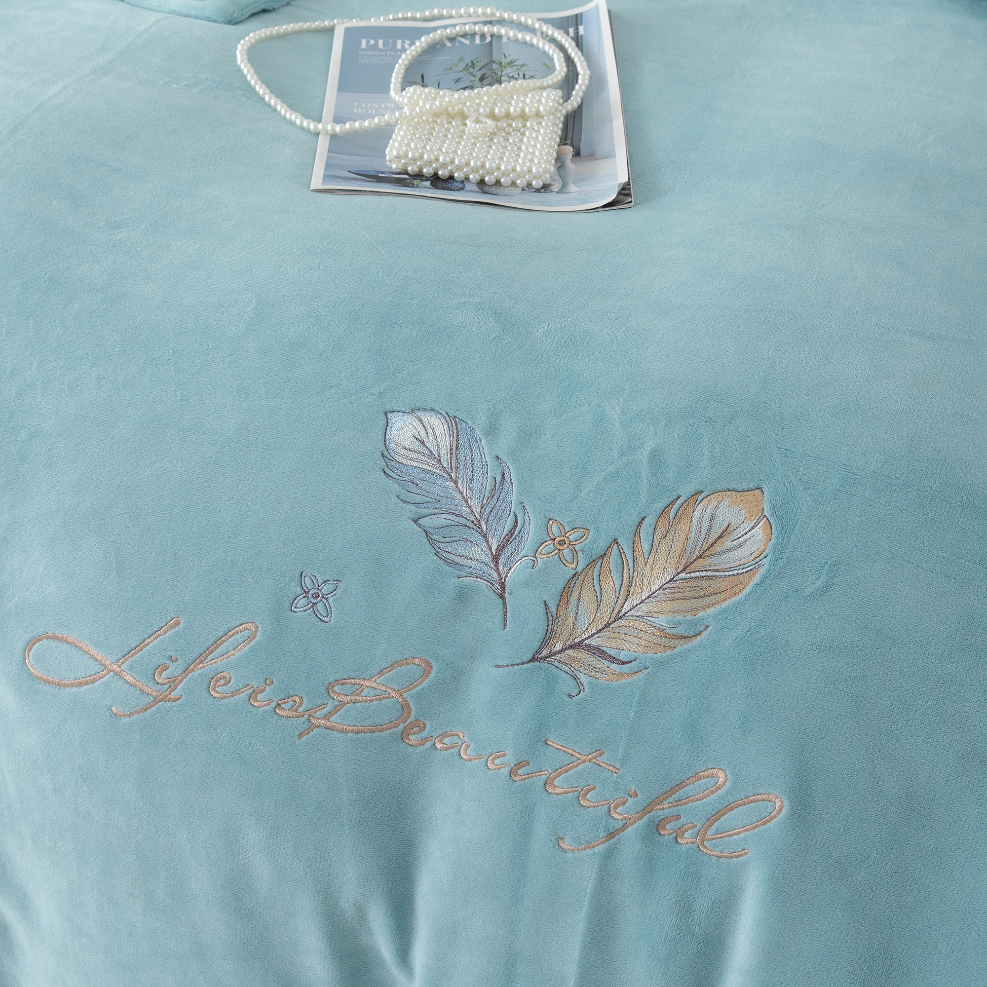 贝尔 2025新款纯色高克重牛奶绒刺绣四件套-羽魅 羽魅-浅绿