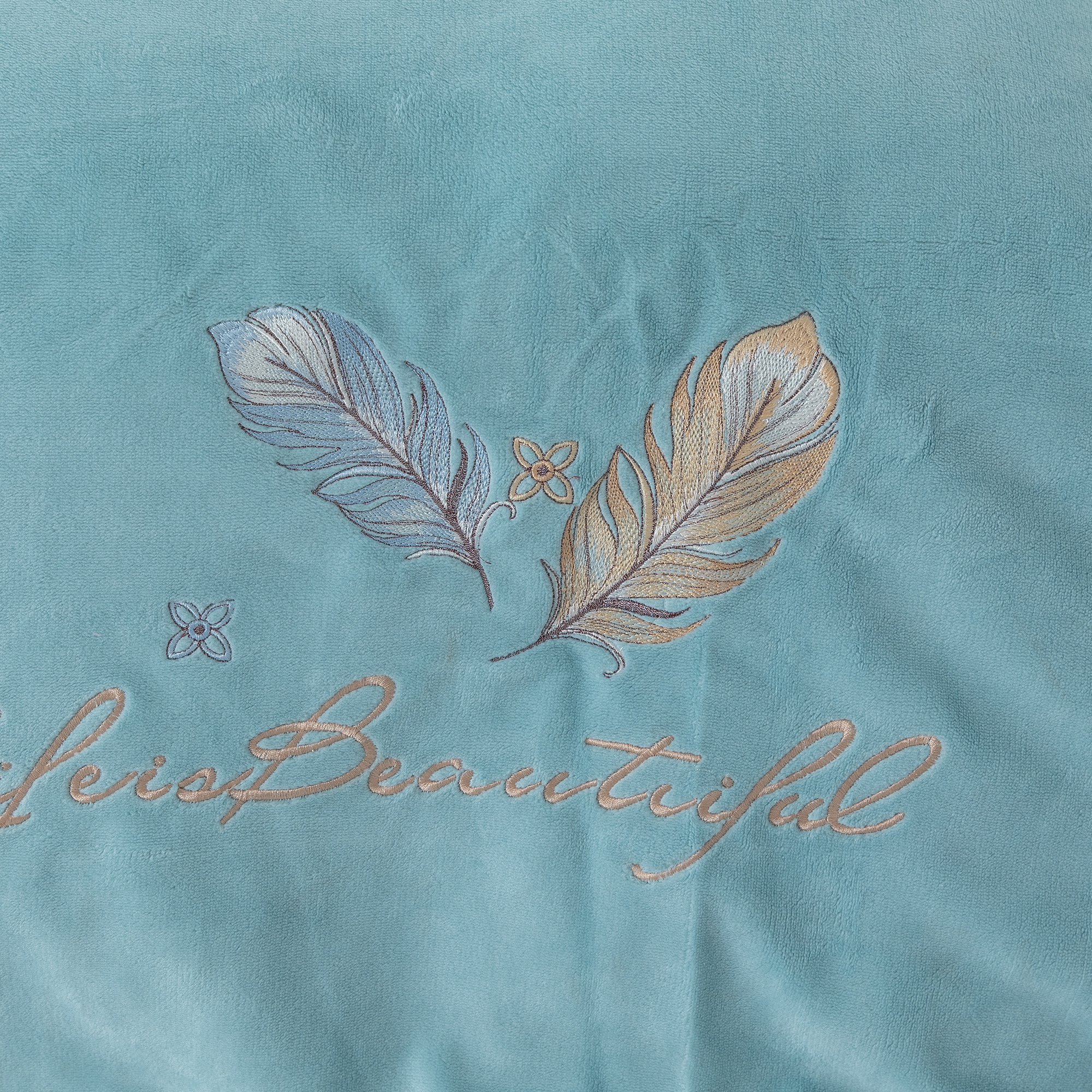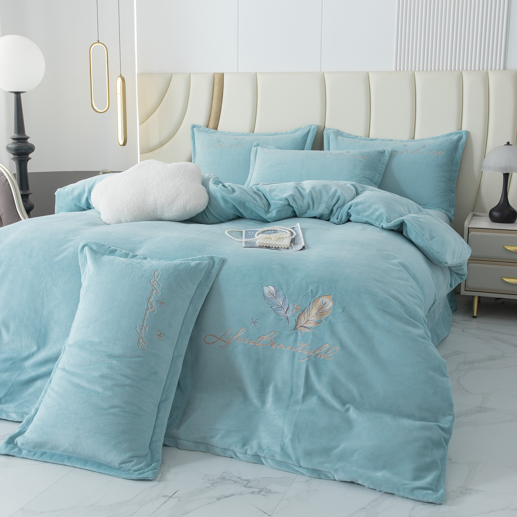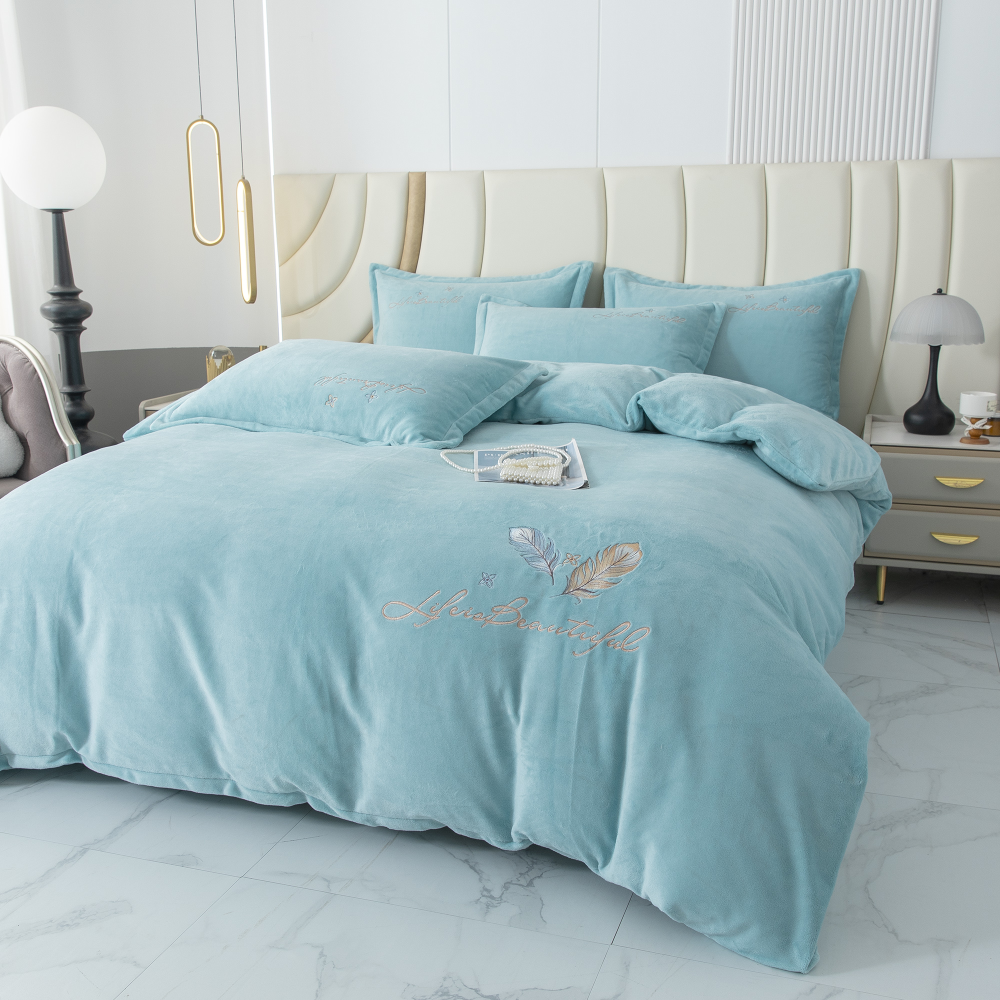 贝尔 2025新款纯色高克重牛奶绒刺绣四件套-羽魅 羽魅-浅绿