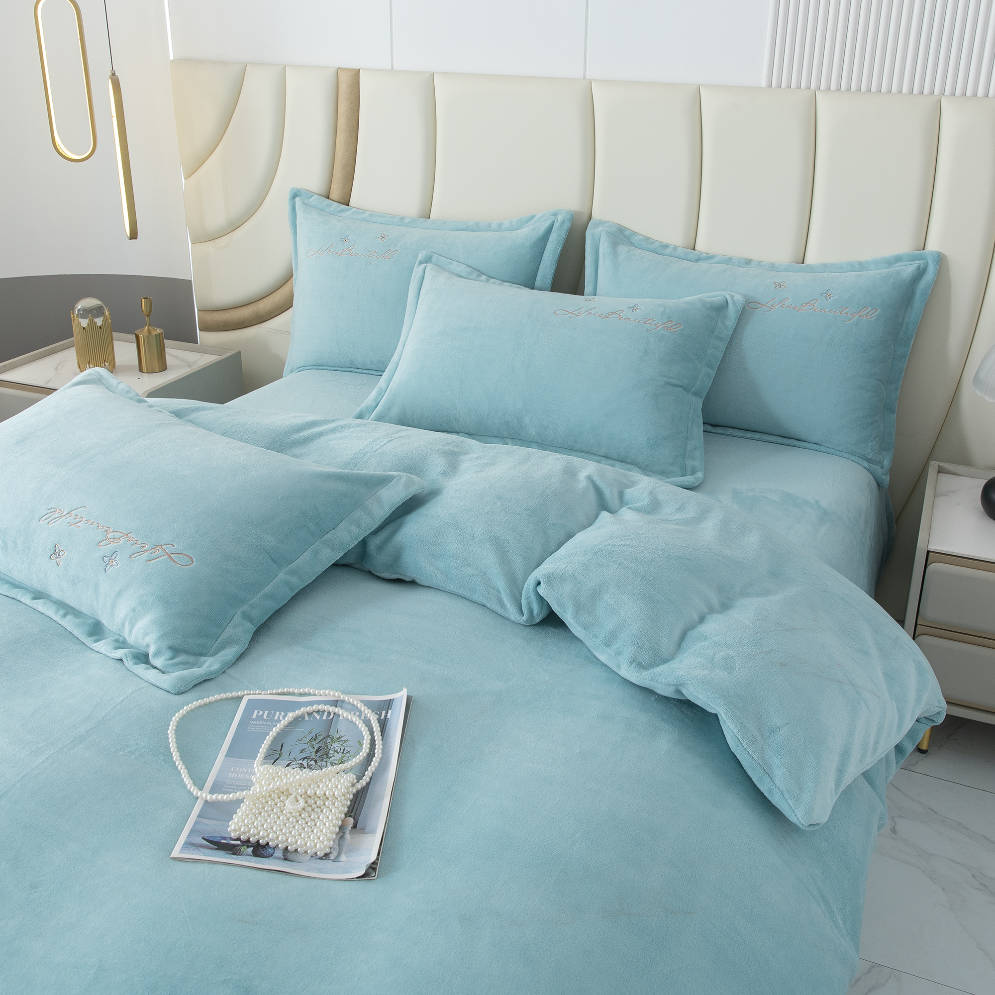 贝尔 2025新款纯色高克重牛奶绒刺绣四件套-羽魅 羽魅-玉色,羽魅-玉色