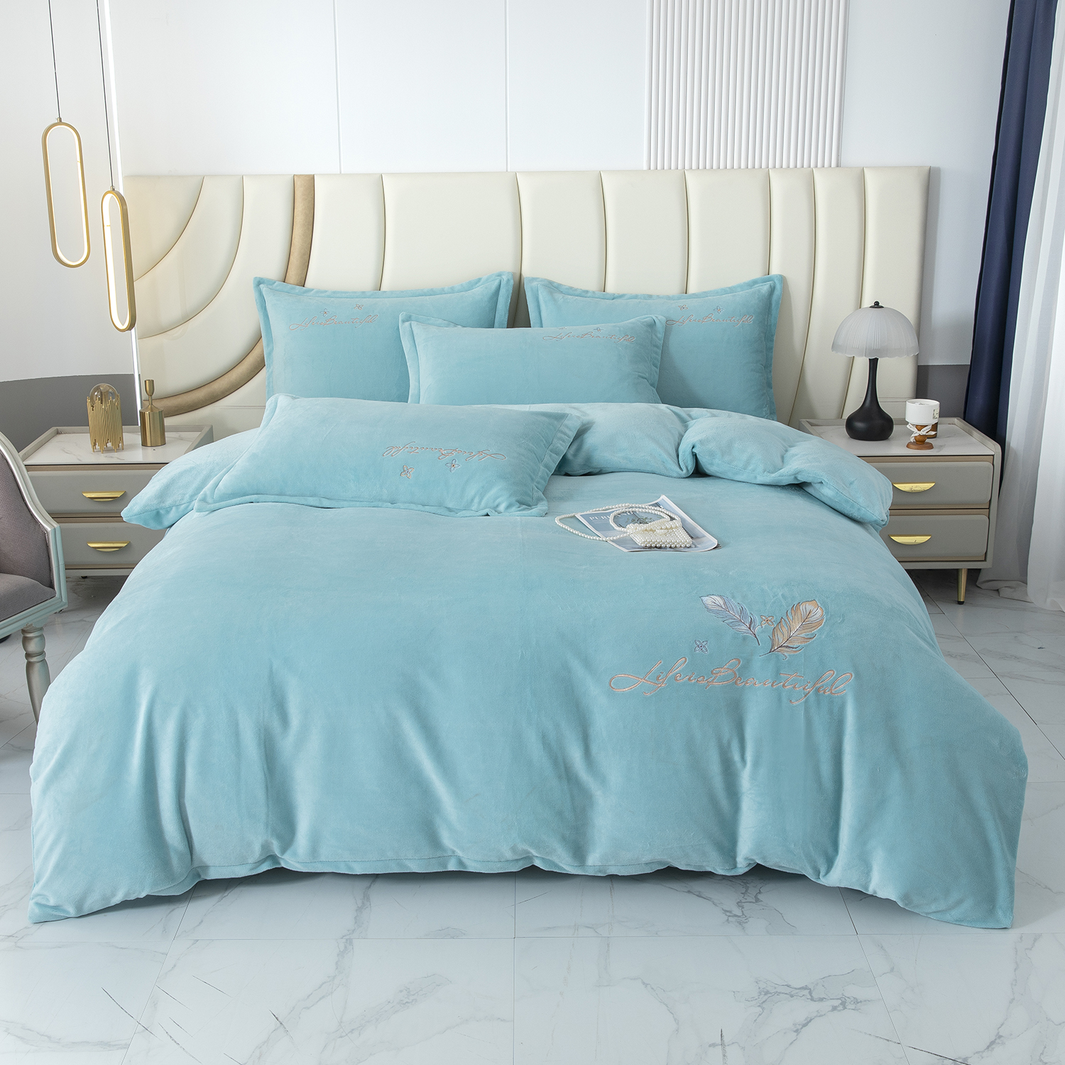 (总)贝尔 2025新款纯色高克重牛奶绒刺绣四件套-羽魅,羽魅-豆沙,羽魅-粉色,羽魅-高级灰,羽魅-蓝色,羽魅-浅绿,羽魅-玉色