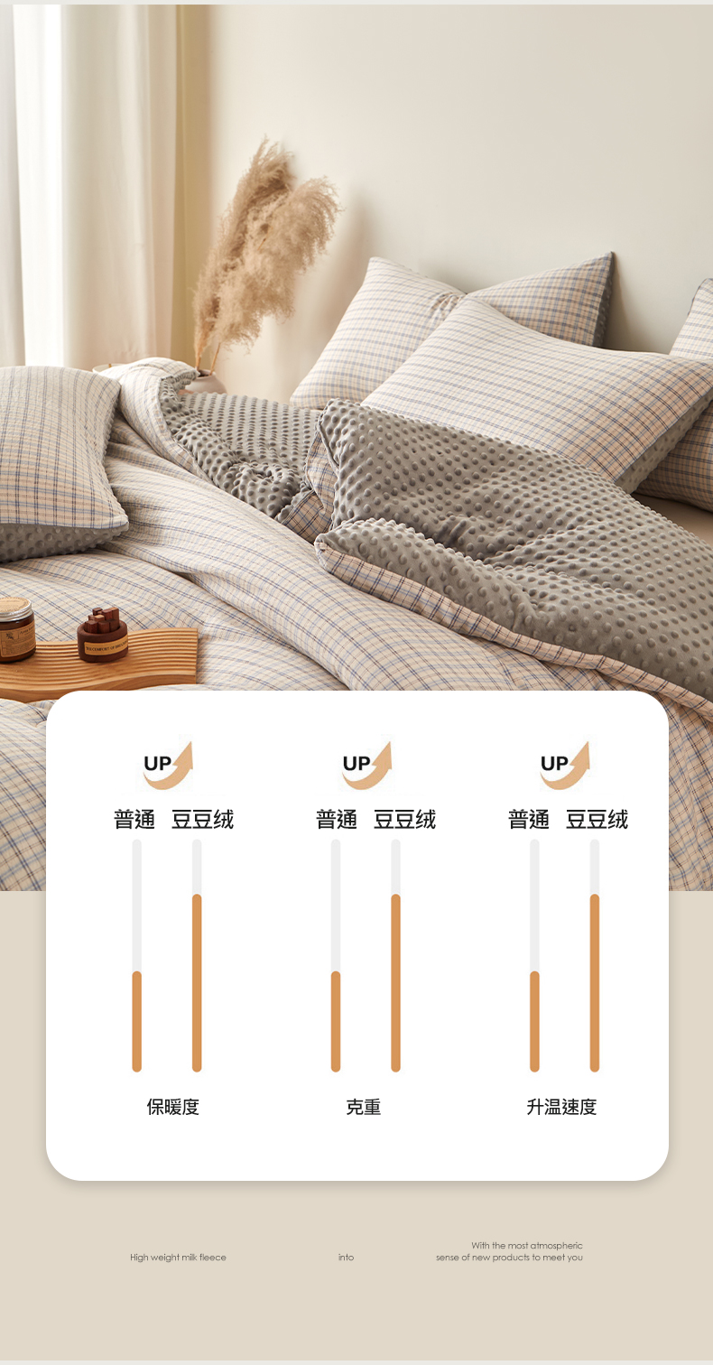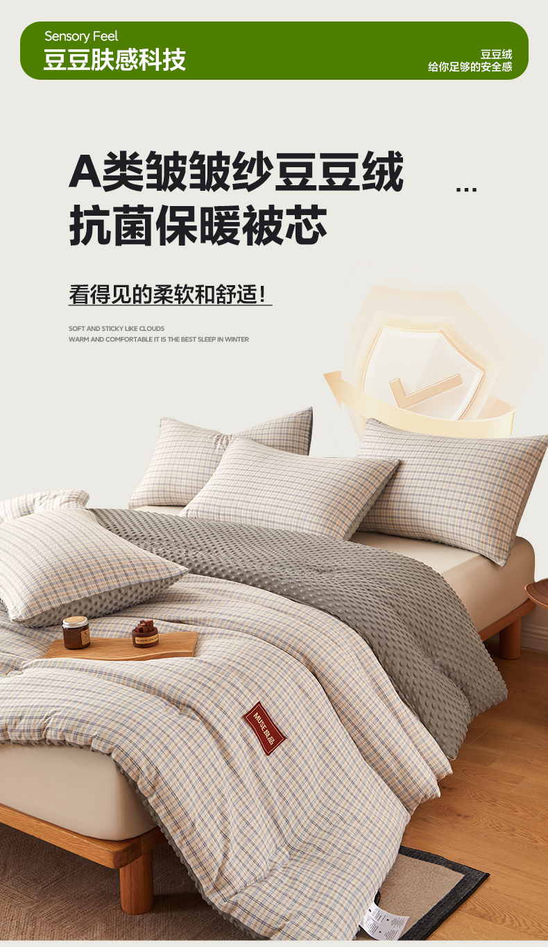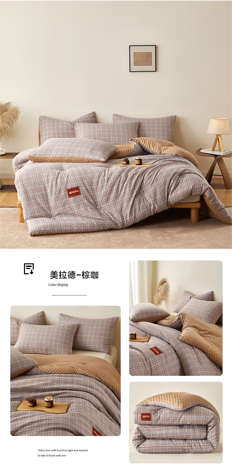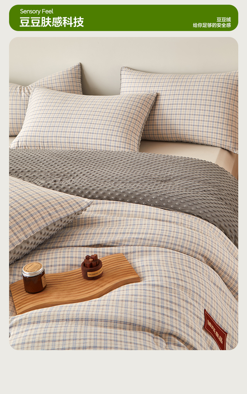 商品名称:玛德琳 2025新款美拉德条格抗菌豆豆绒抗菌被被子被芯 美拉德-灰