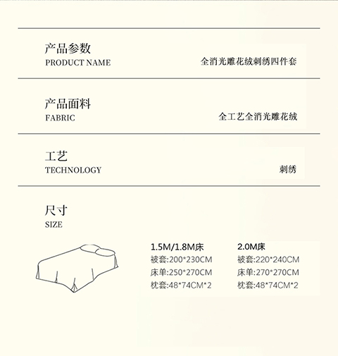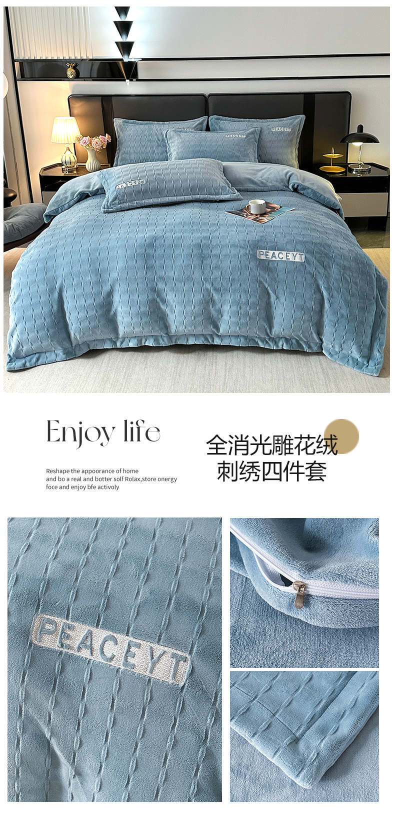 商品名称:梓之赫 2025新款全消光雕花绒牛奶绒刺绣四件套-甜梦 甜梦-豆沙