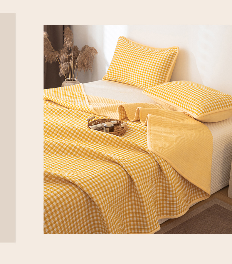 当前位置: 91家纺网 > 商品网购 > 床上用品 > 床盖 > 简宜家居(朝初家纺) 2025新款全棉纯棉色织水洗棉床盖 黄小格