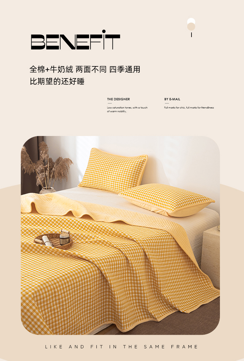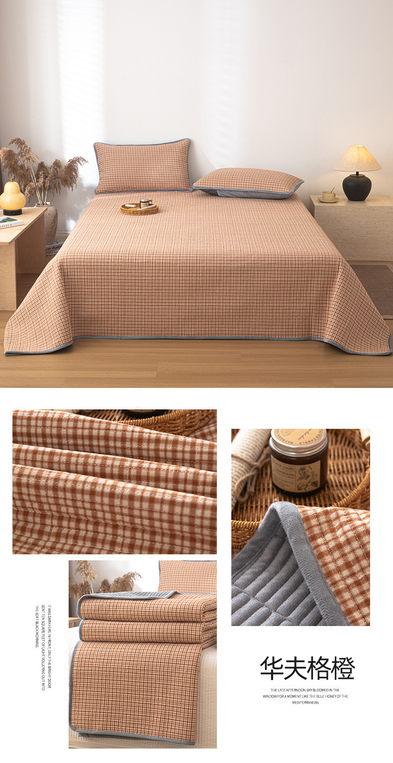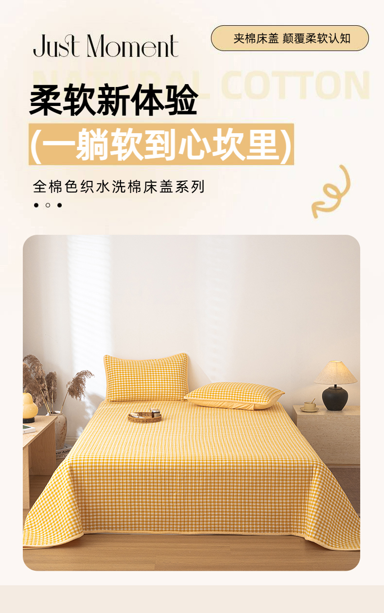 • 91家纺网 家纺一手货源 找家纺 简宜家居(朝初家纺) 2025新款全棉纯棉色织水洗棉床盖 黄小格