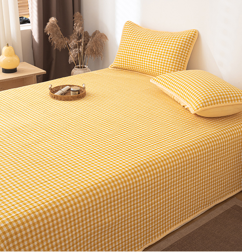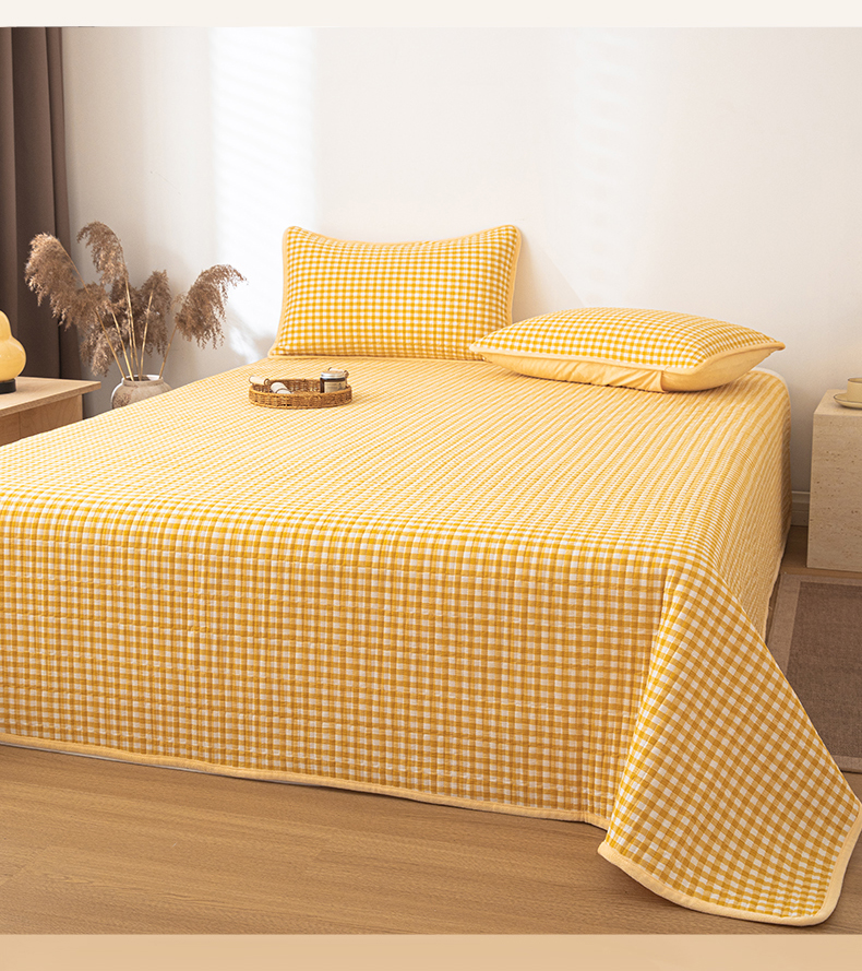 简宜家居(朝初家纺) 2025新款全棉纯棉色织水洗棉床盖 黄小格
