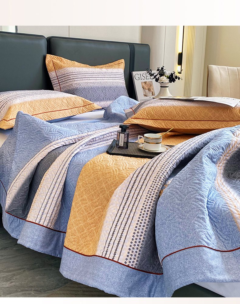 畅畅家纺 2025春夏款13372全棉纯棉活性印花床盖夹棉加厚绗缝防滑床罩 漫生活