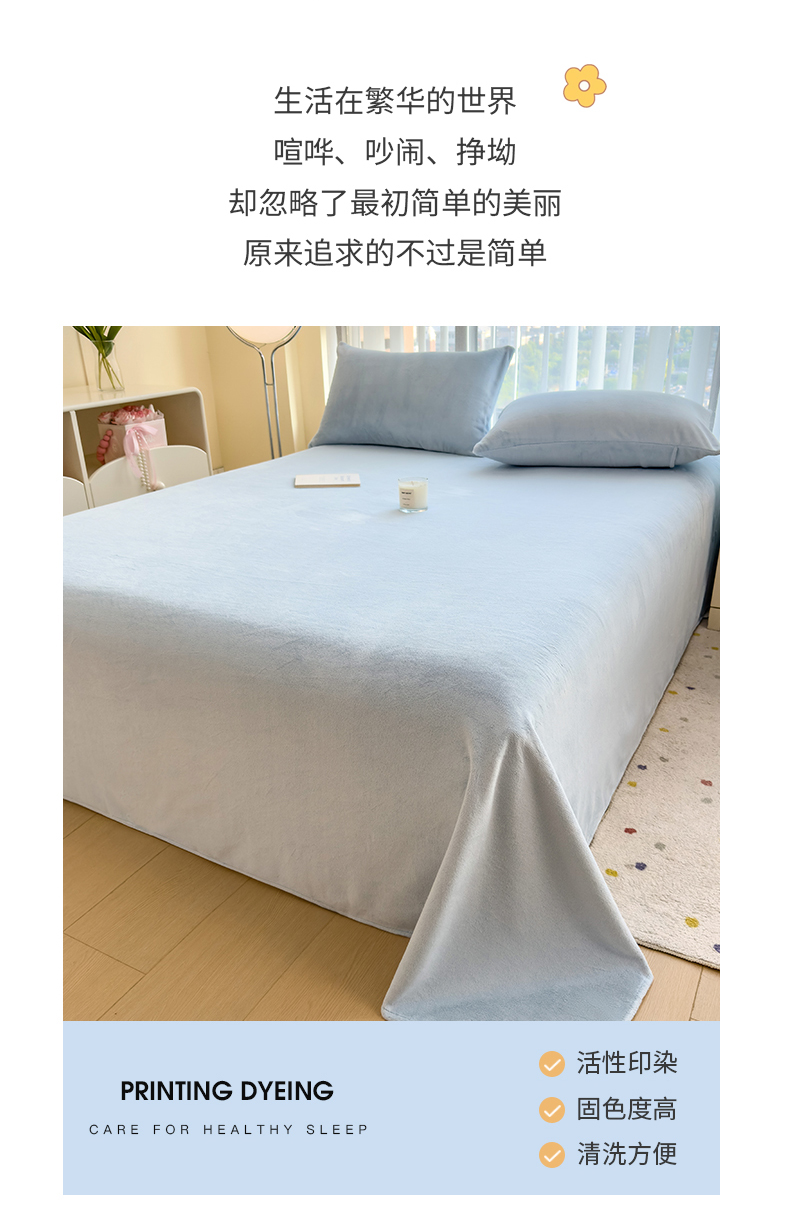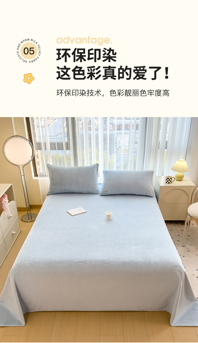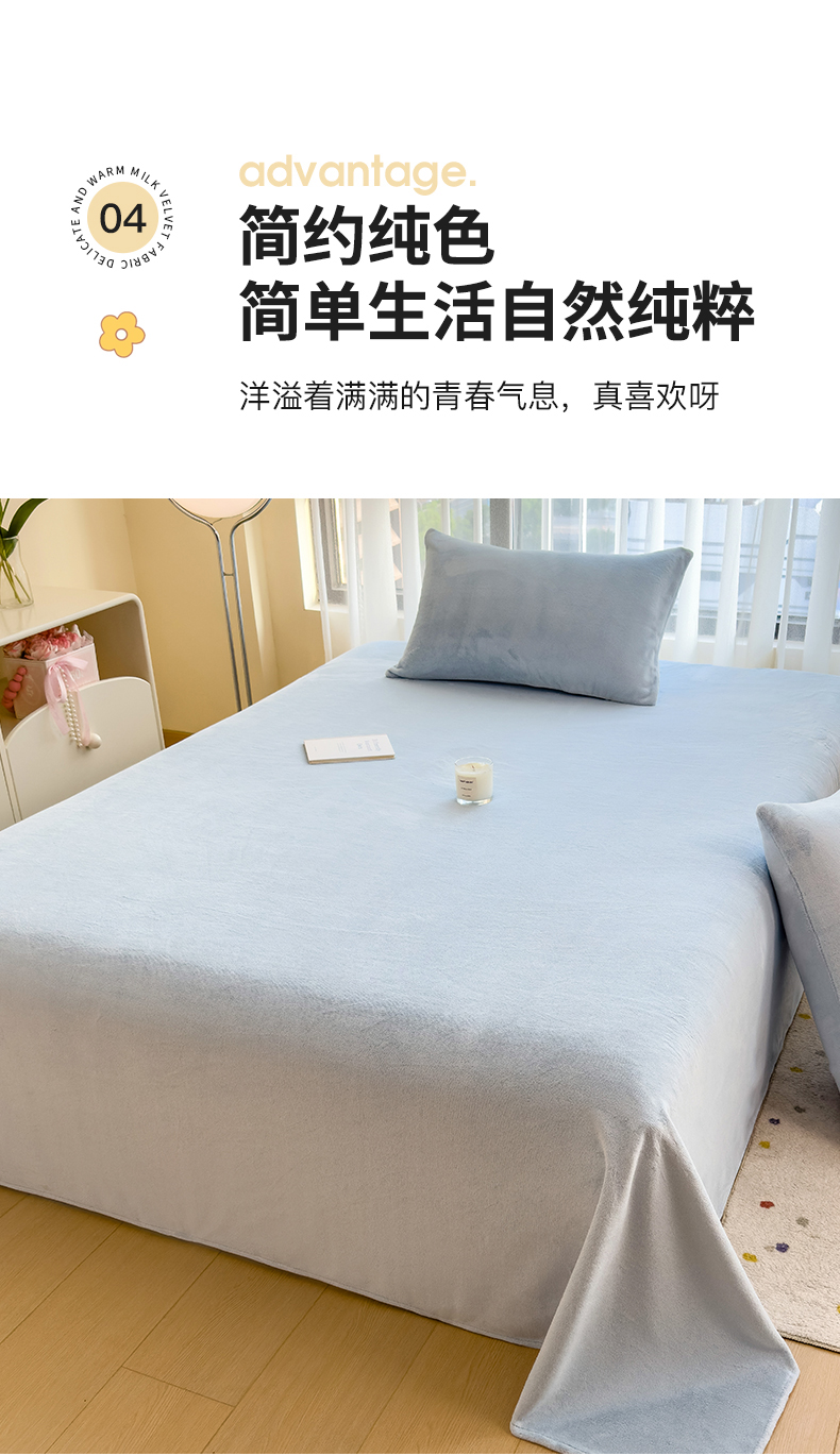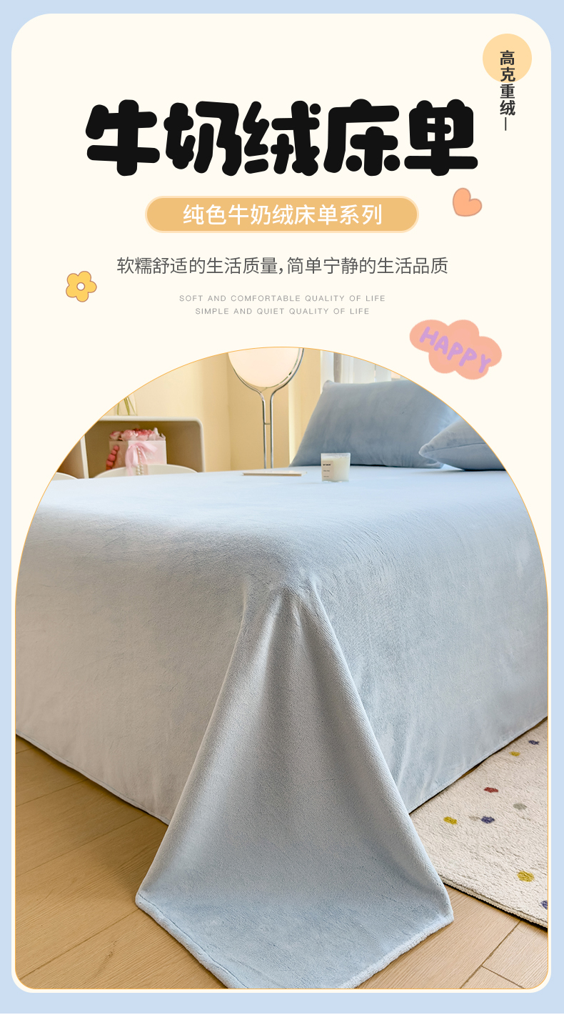 • 91家纺网 家纺一手货源 找家纺 丽美人家纺 2025秋冬新款牛奶绒纯色单床单 海天蓝