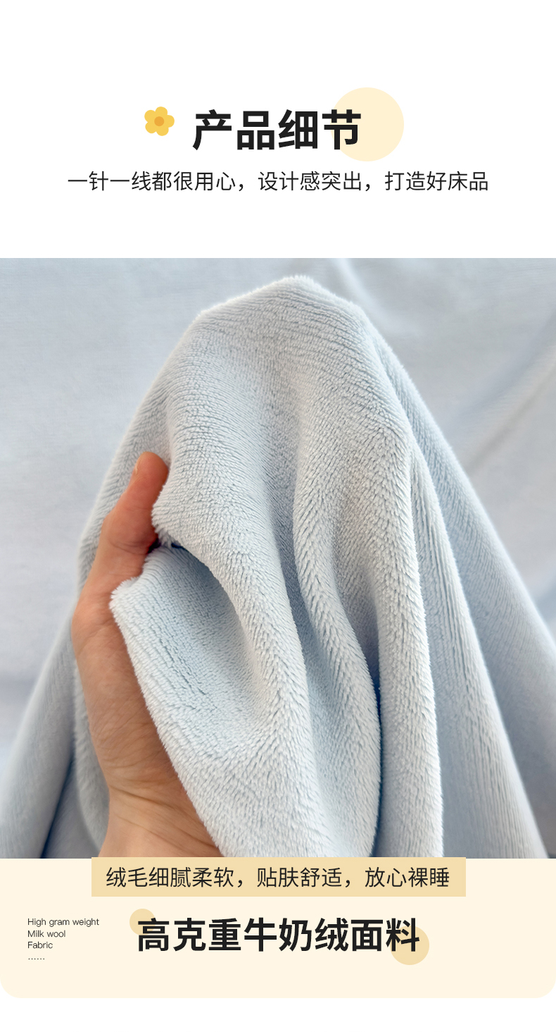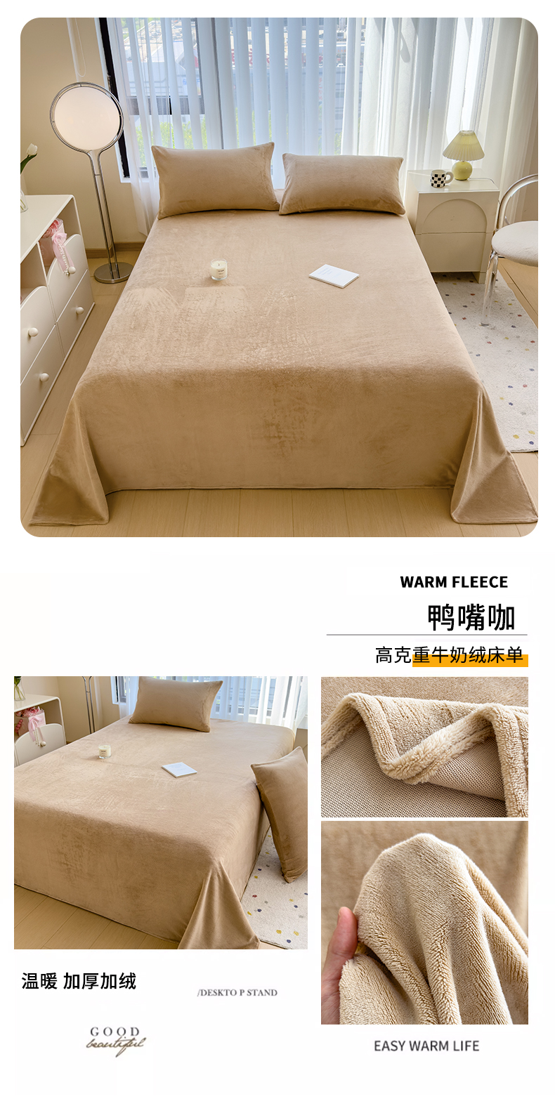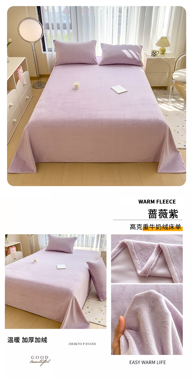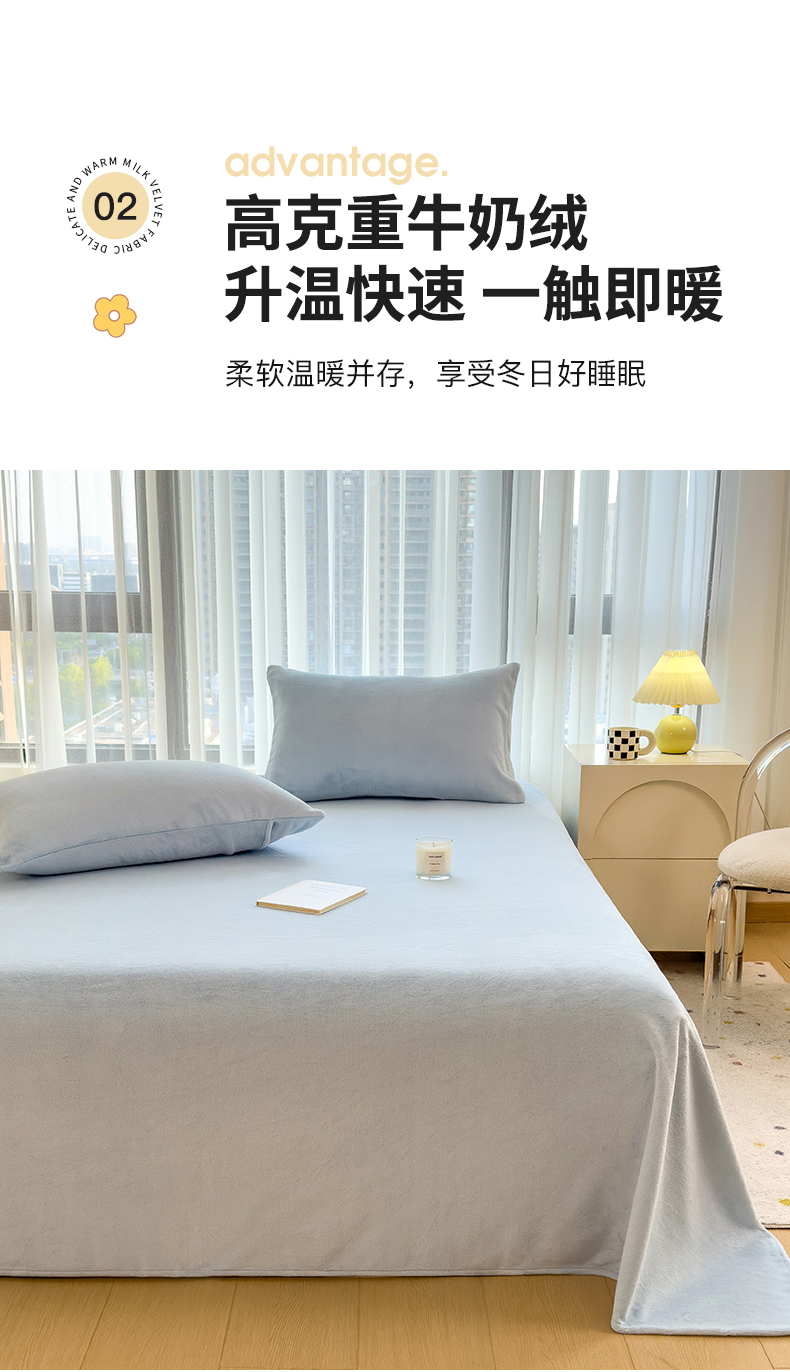 • 91家纺网 家纺一手货源 找家纺 丽美人家纺 2025秋冬新款牛奶绒纯色单床单 海天蓝