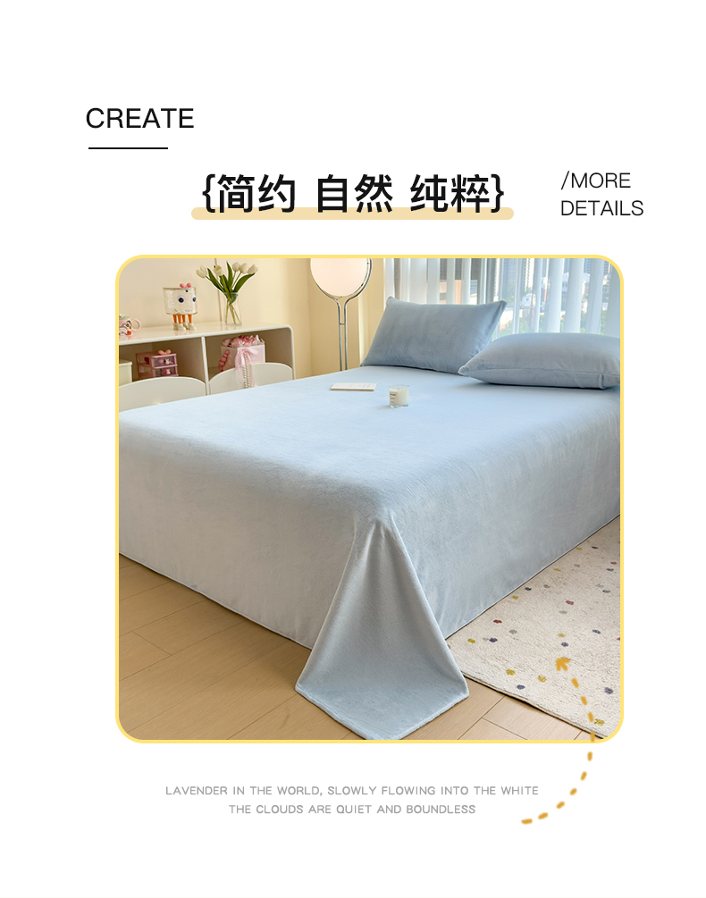 丽美人家纺 2025秋冬新款牛奶绒纯色单床单 海天蓝