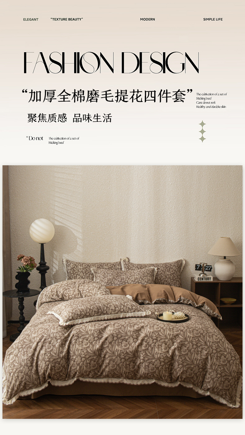 当前位置: 91家纺网 > 商品网购 > 床品套件 > 四件套 > 普通磨毛四件套 > 优米家纺 2025新款A类加厚全棉纯棉磨毛提花四件套(提供买家秀) 浮绘花影
