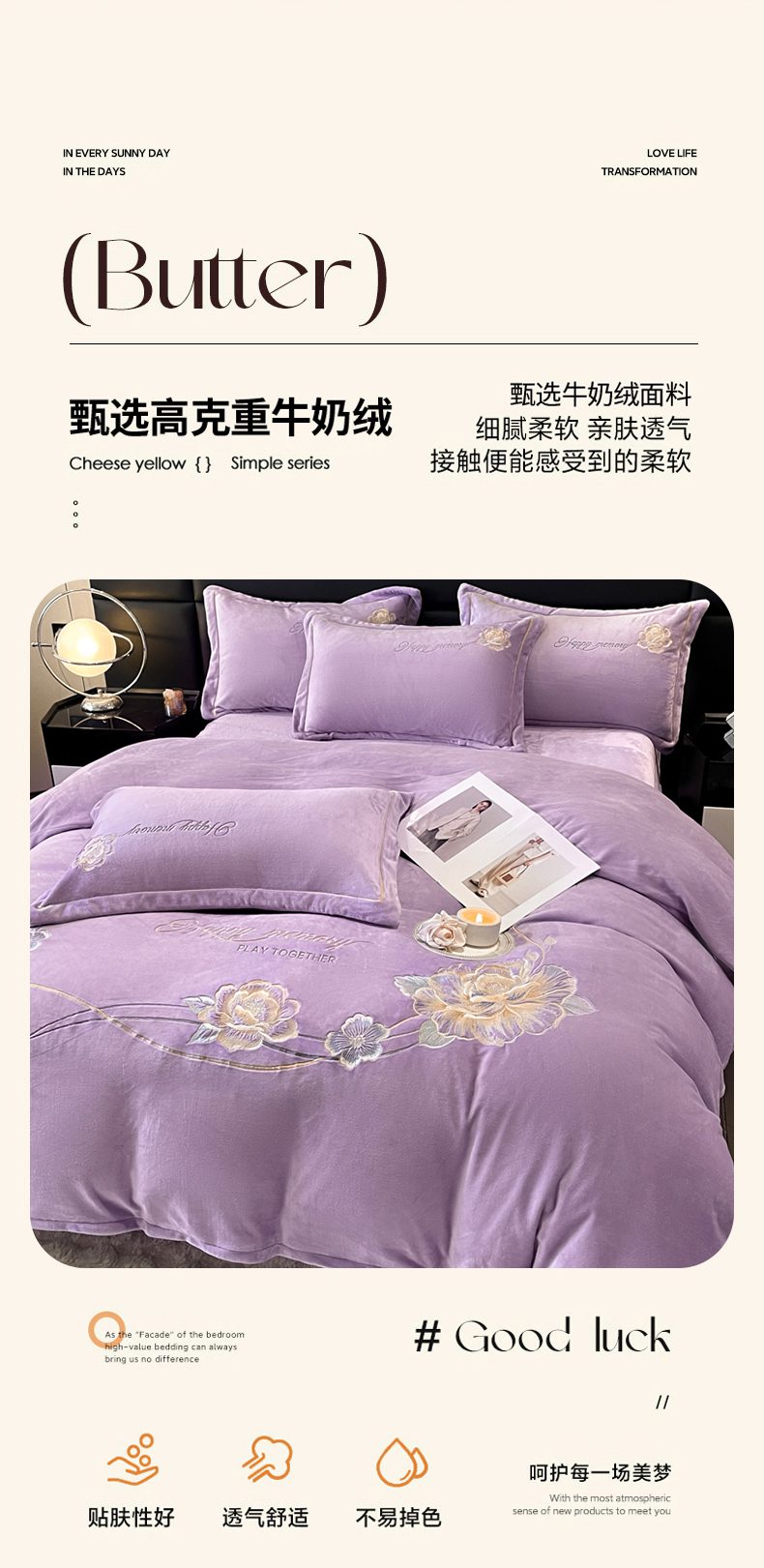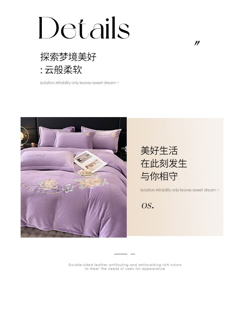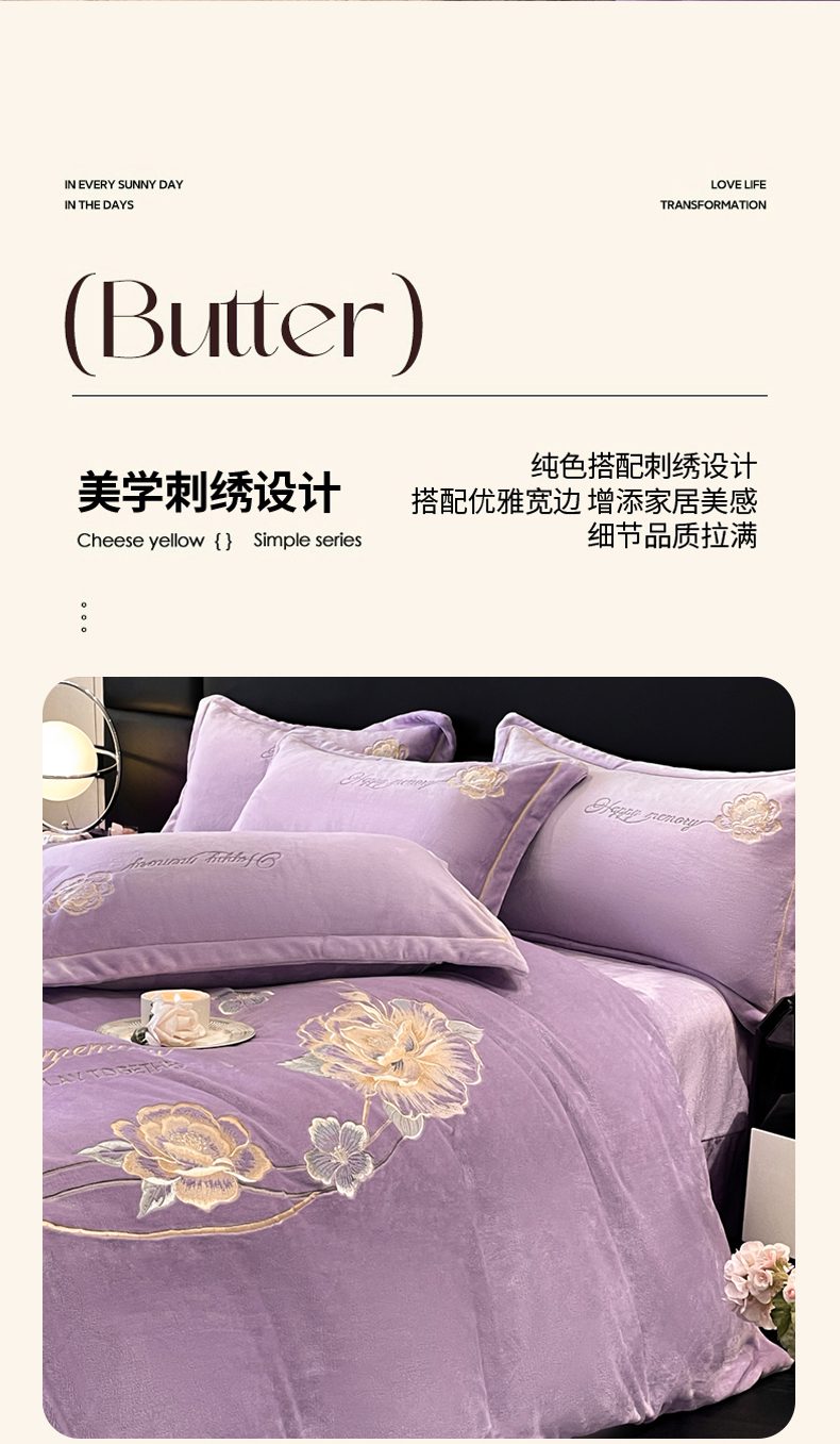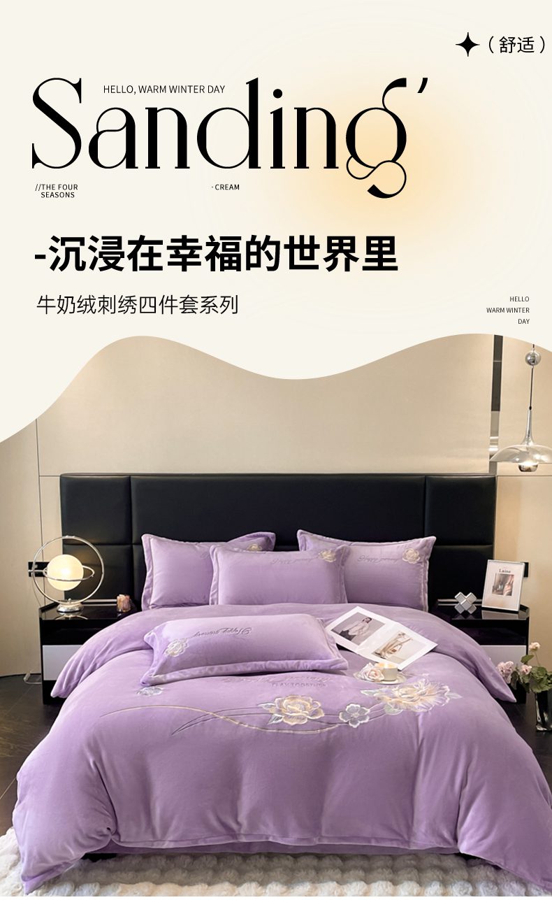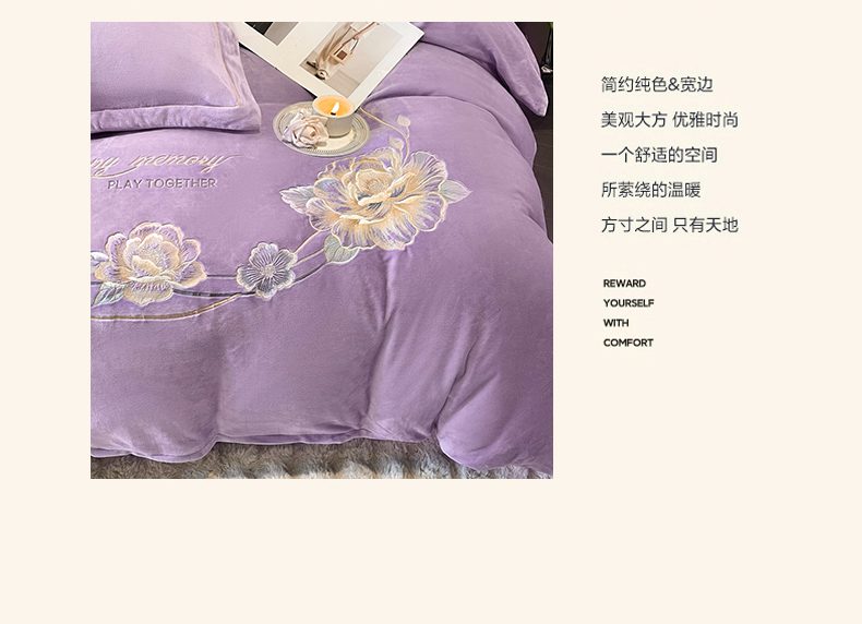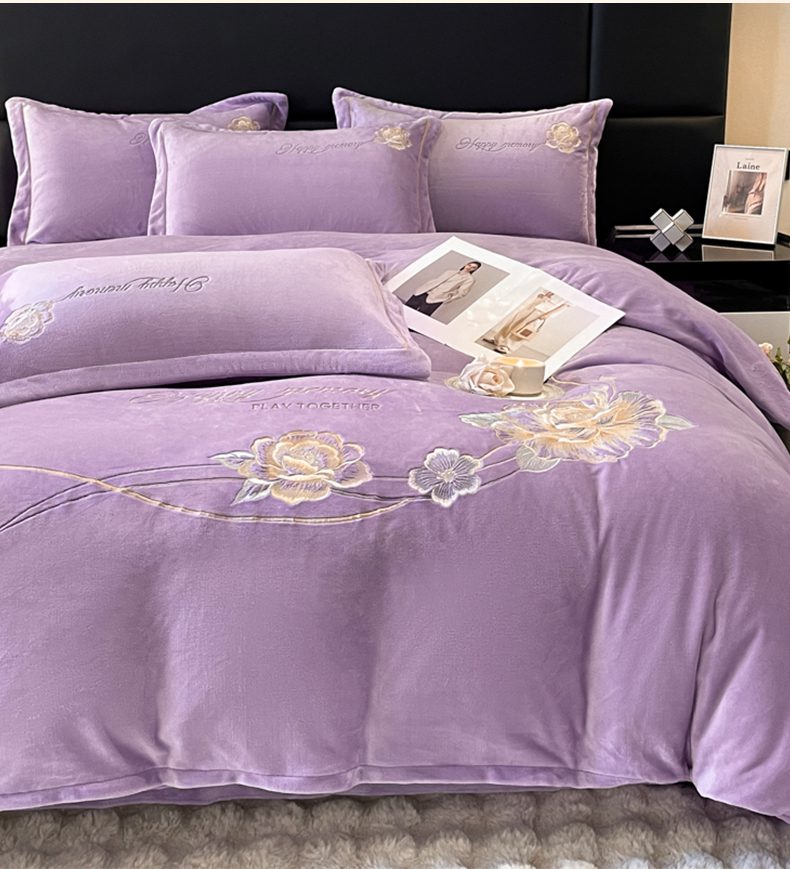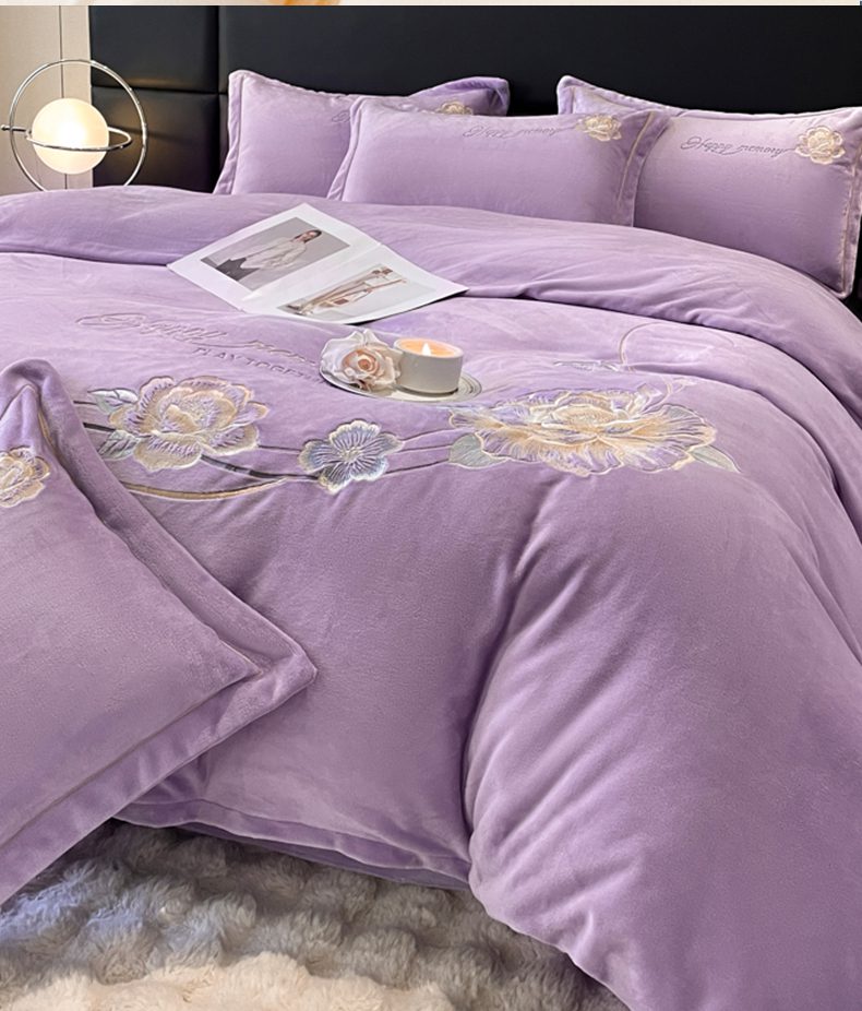 商品名称:畅畅家纺 2025新款冬季牛奶绒绣花绒四件套 芳华-紫
