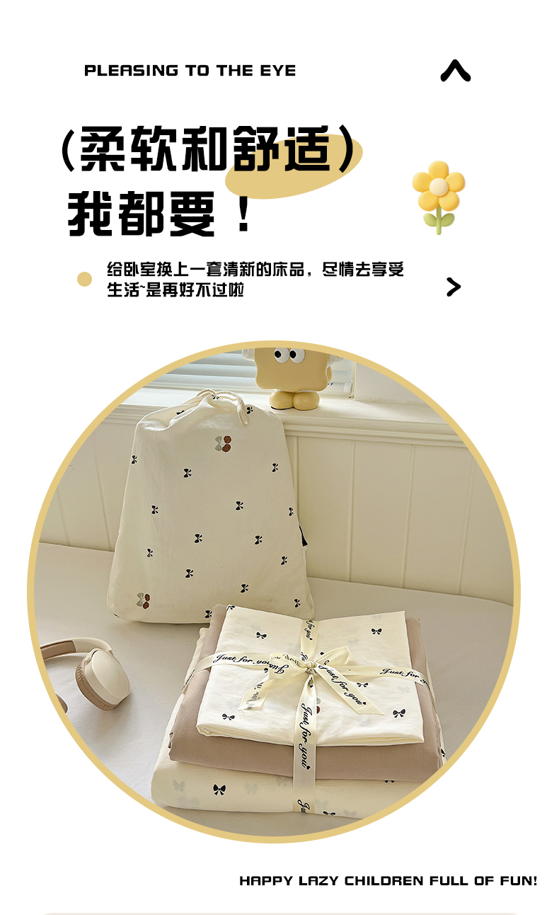 当前位置: 91家纺网 > 商品网购 > 床品套件 > 四件套 > 其它四件套 > 优选 2025新款加厚爆款小布袋韩国古法水洗棉床单学生三件套床笠款四件套 蝴蝶结日记