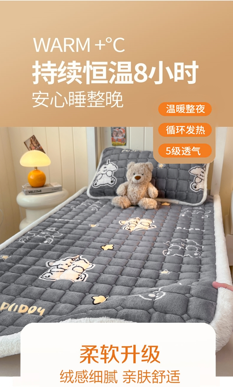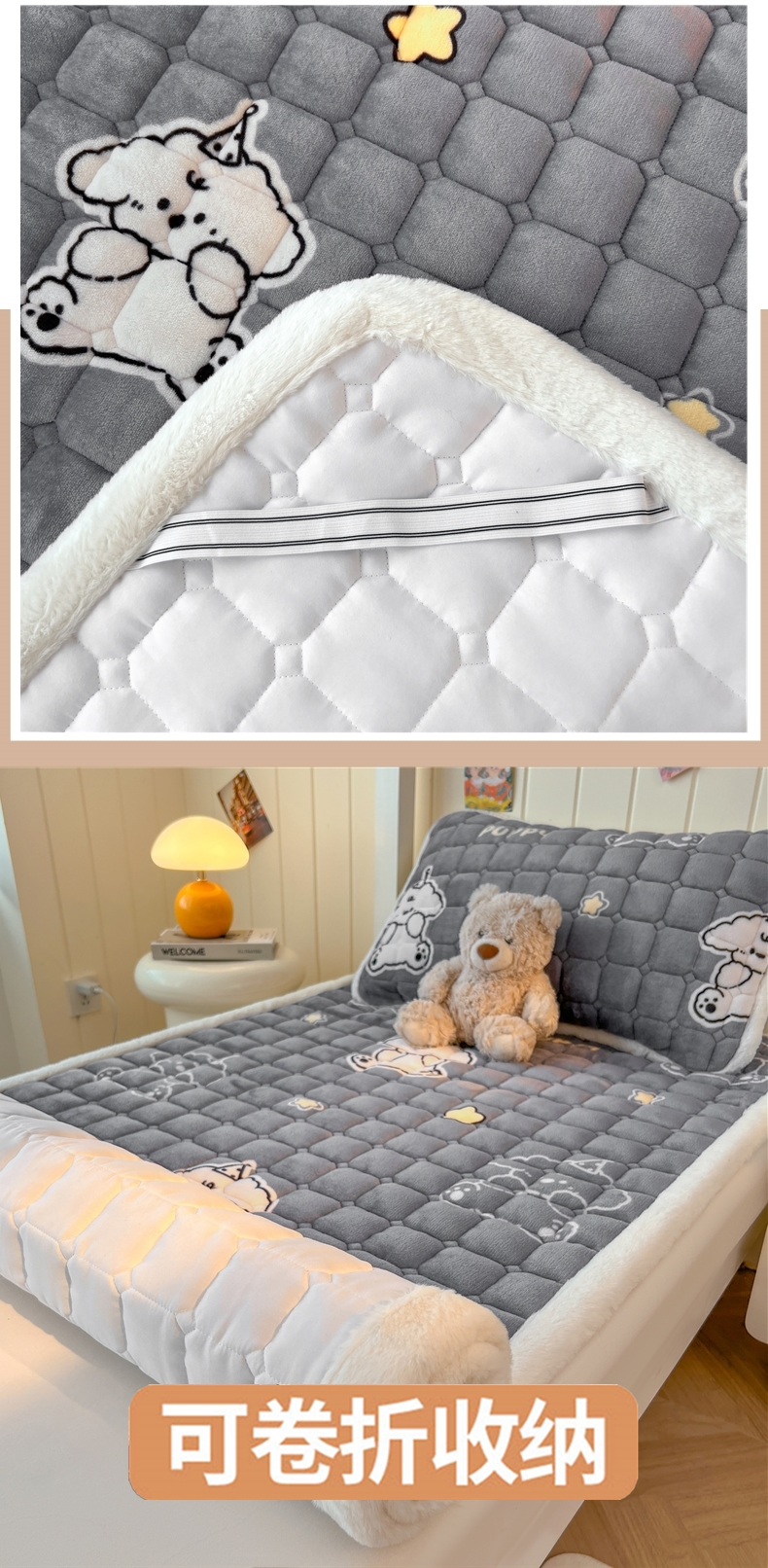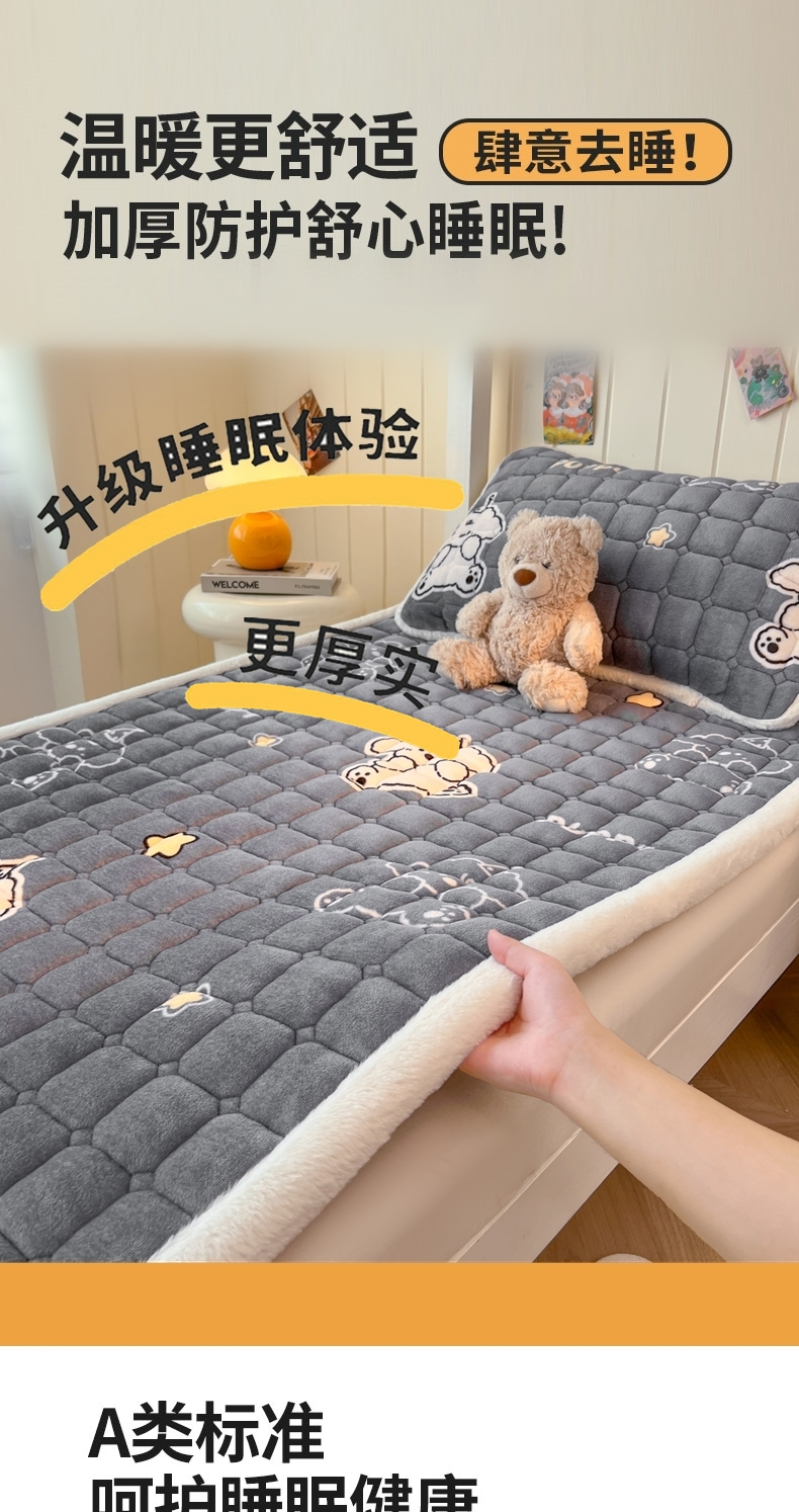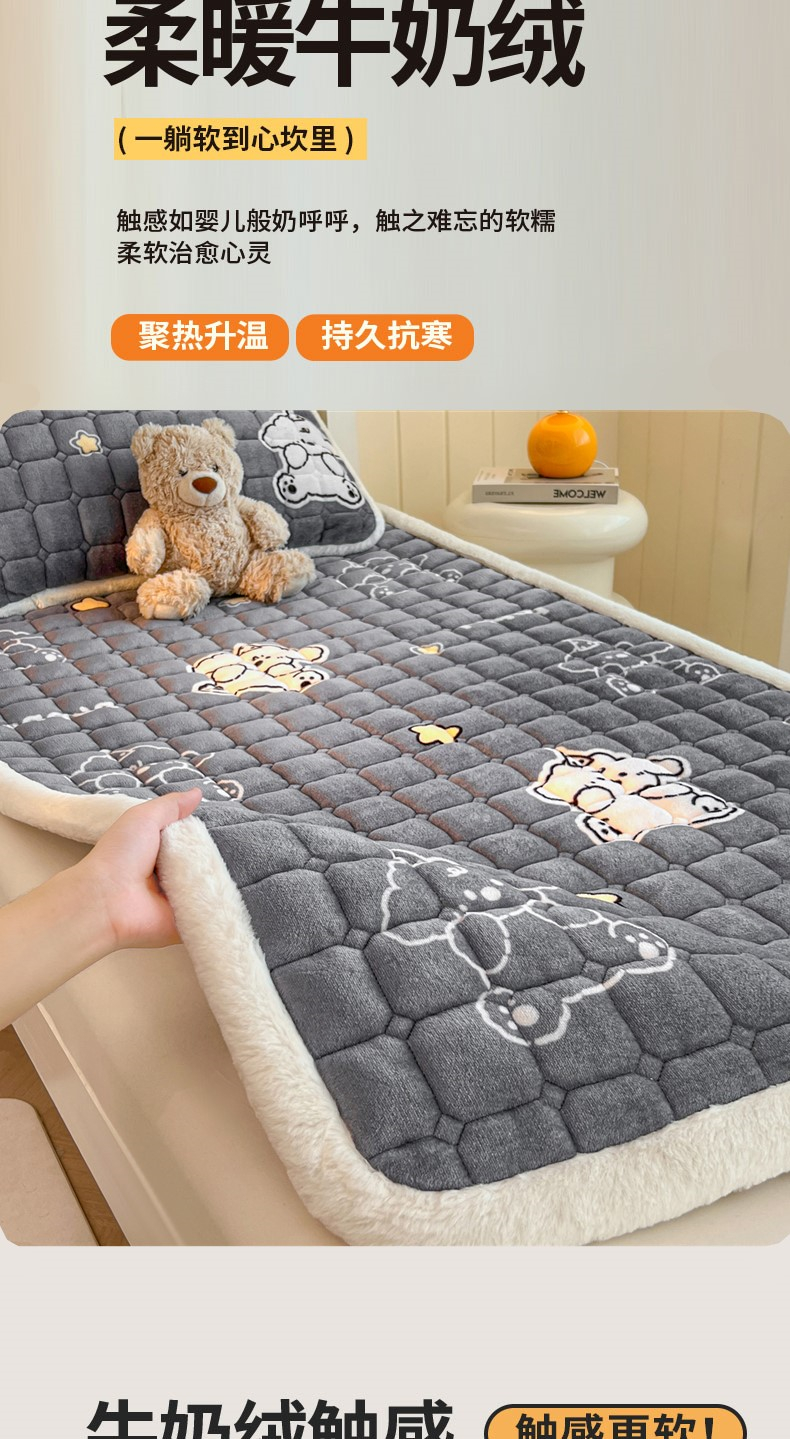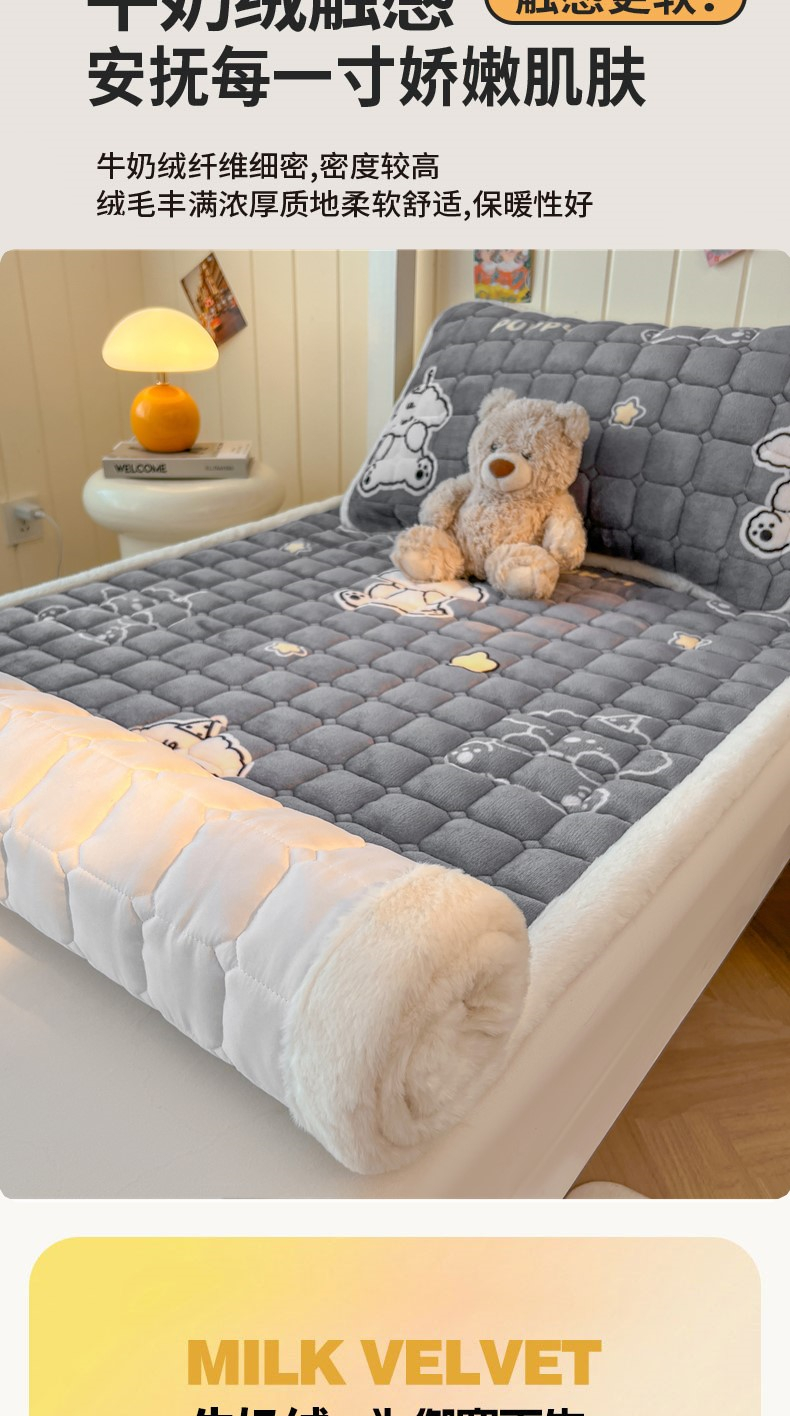 (总)喜居 2025新款牛奶绒卡通刺绣床褥垫-苹安熊,苹安熊-灰,苹安熊-咖,苹安熊-粉,苹安熊-蓝,苹安熊-绿