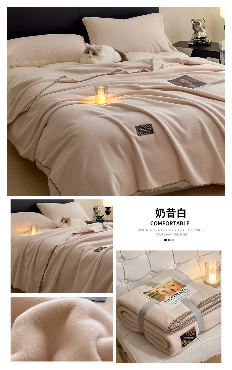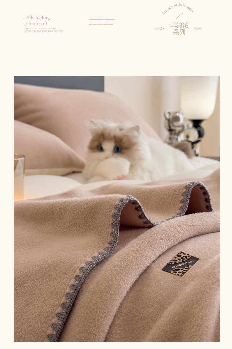丝幔家纺 2025新款A类羊棉绒原创设计毛毯系列 奶咖