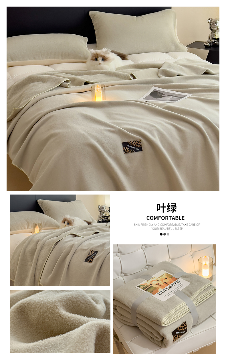 (总)丝幔家纺 2025新款A类羊棉绒原创设计毛毯系列,叶绿,粉色,湖蓝,奶咖,奶昔白,浅灰,天蓝,香槟金,银灰,月光紫
