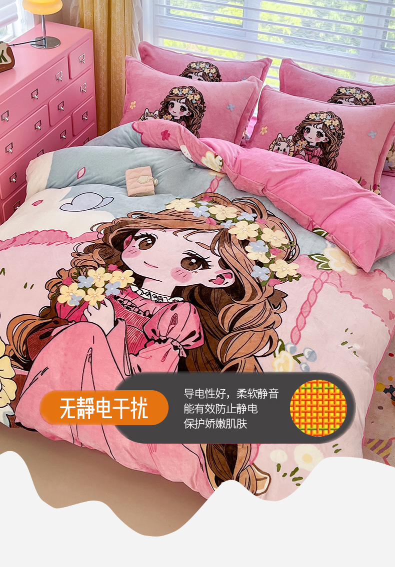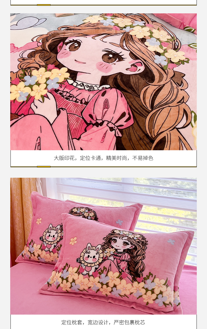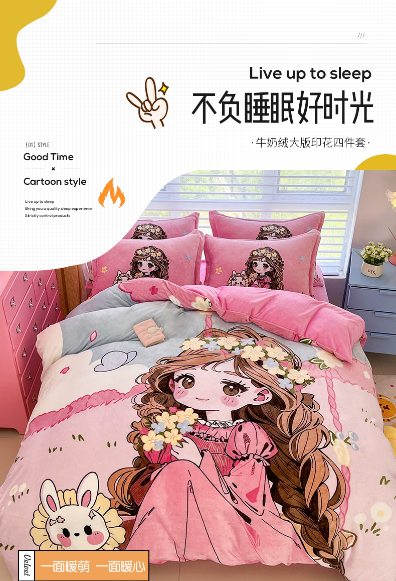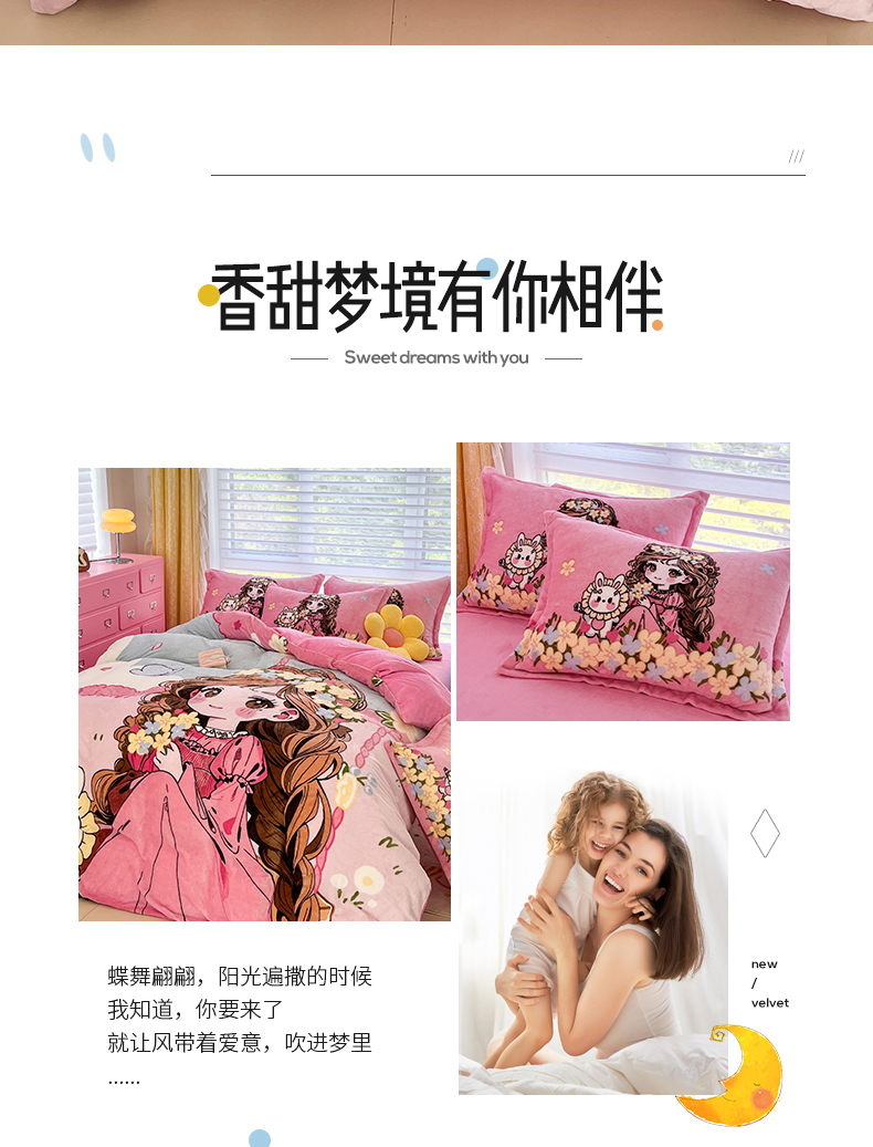 当前位置: 91家纺网 > 商品网购 > 床品套件 > 四件套 > 牛奶绒四件套 > 宝薇 2025新款双面牛奶绒大版卡通印花四件套 小公主绒
