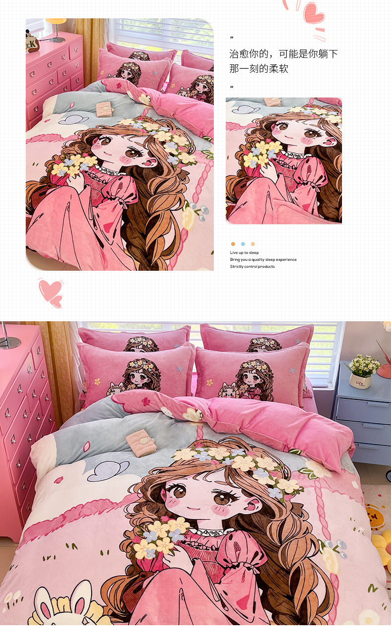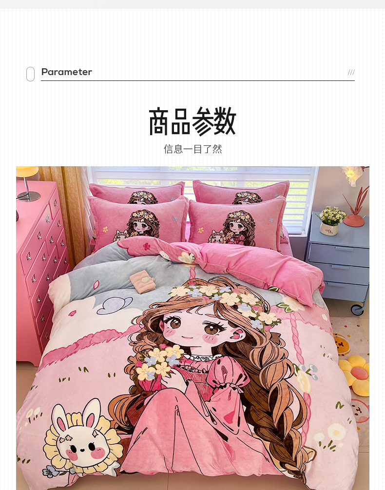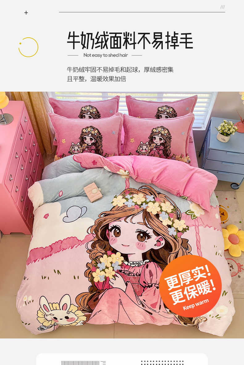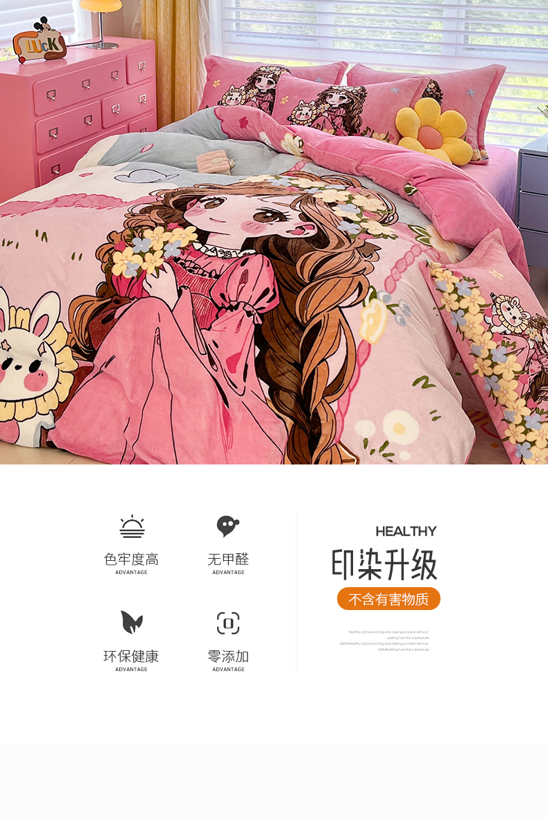 当前位置: 91家纺网 > 商品网购 > 床品套件 > 四件套 > 牛奶绒四件套 > 宝薇 2025新款双面牛奶绒大版卡通印花四件套 小公主绒