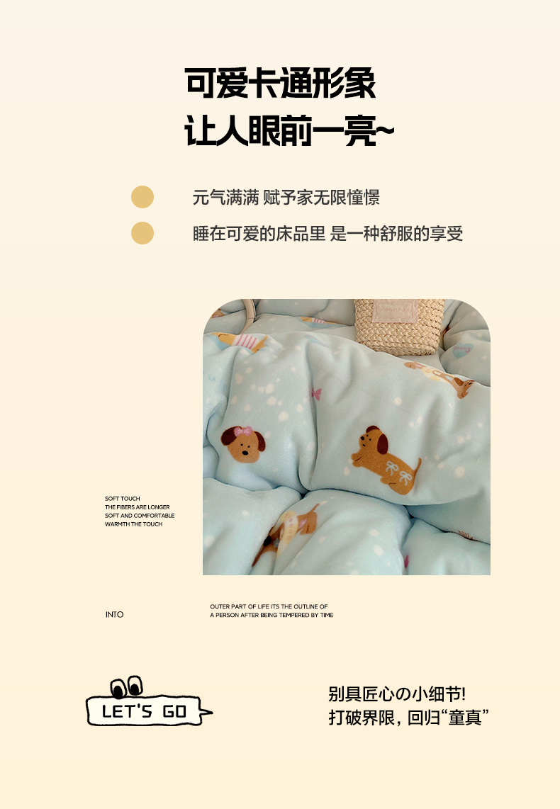 美乐迪家纺 2025秋冬新款牛奶绒四件套 许愿小狗