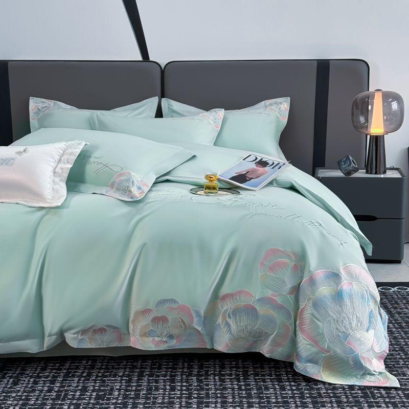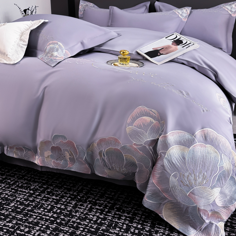 (总)2025新款刺绣亲肤棉简约四件套- 梦里花开系列