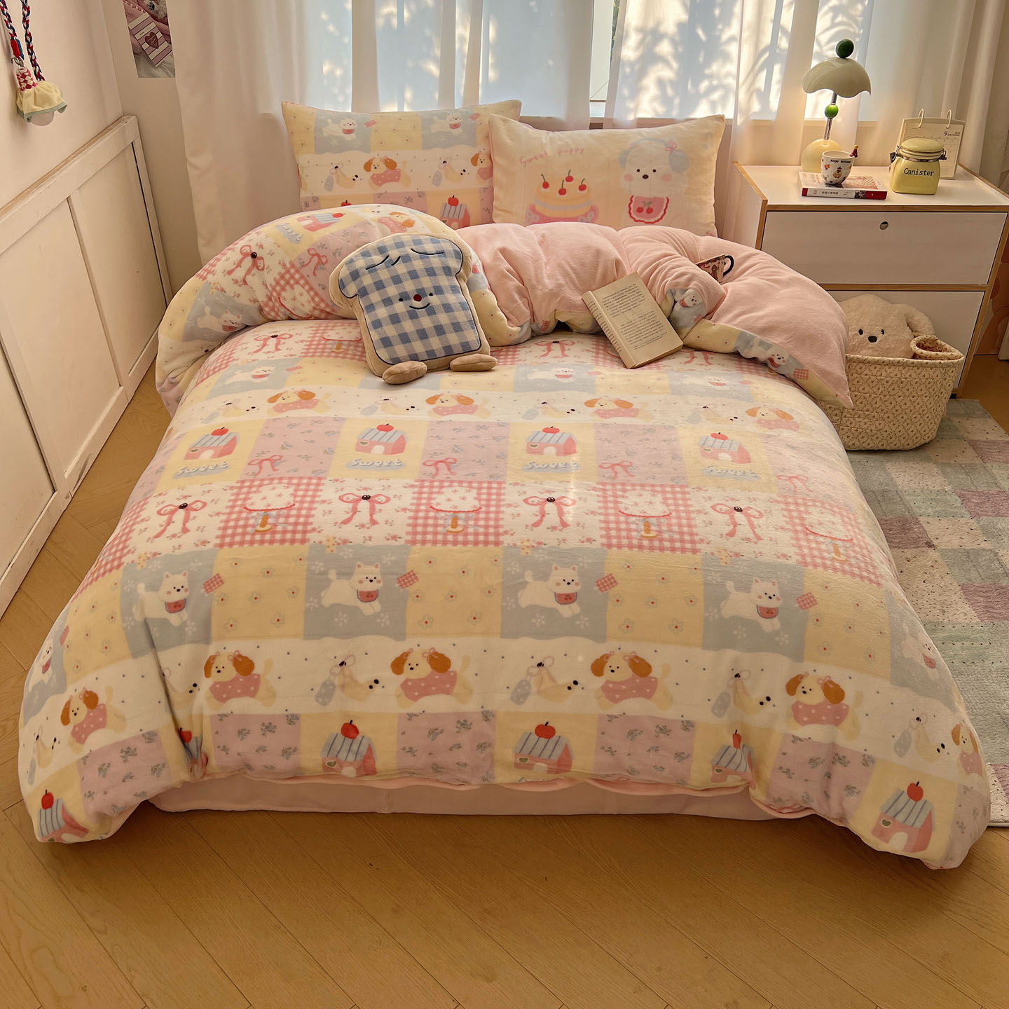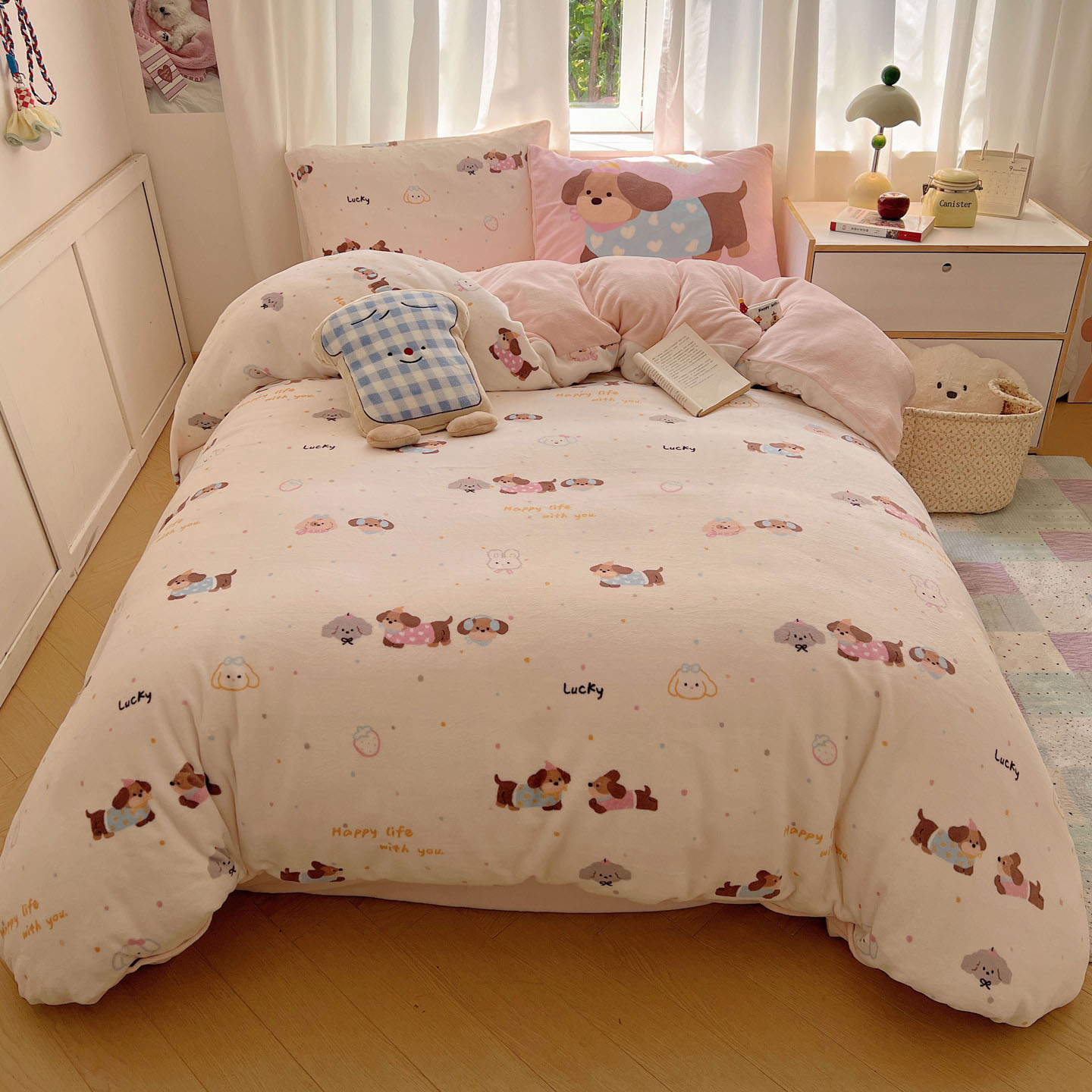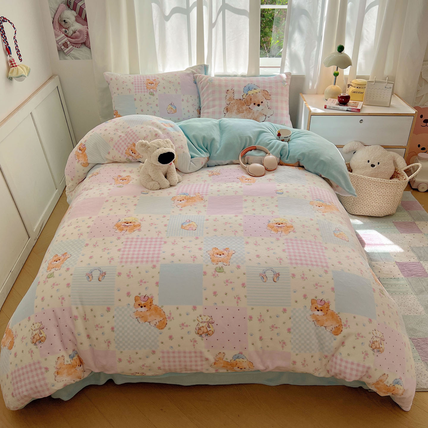 (总)桃喜 2024新款13372学生季全棉宿舍三件套,比熊小狗,波点动物园,波点西高地,狗狗家族,蝴蝶结小兔,蓝色小狗,喵星人,茉莉兔,潘多拉,晚安宝贝,小熊派对