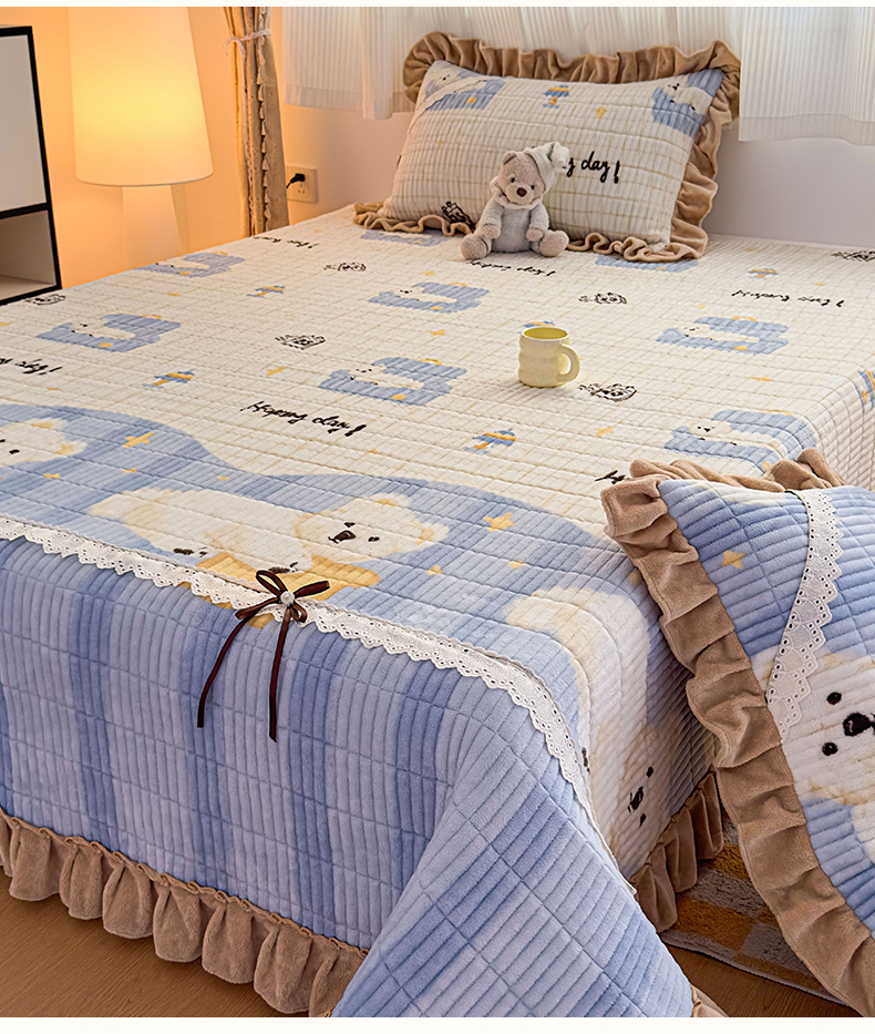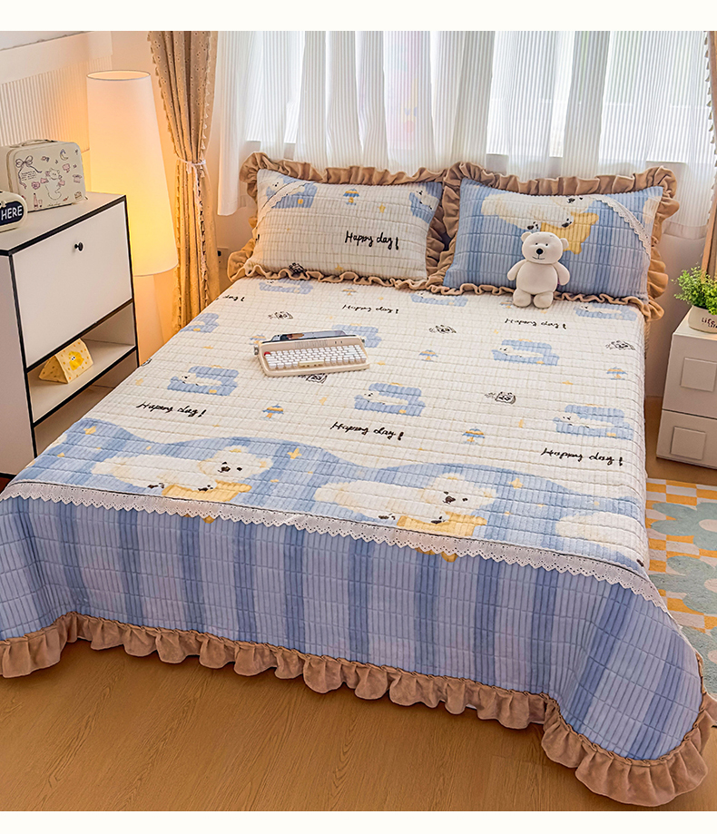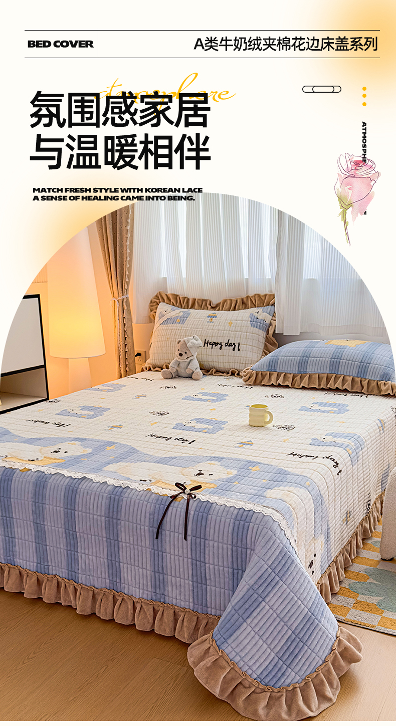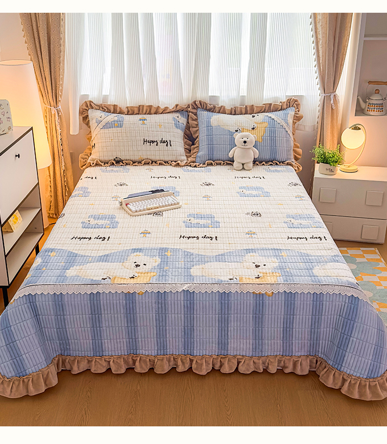 当前位置: 91家纺网 > 商品网购 > 床品套件 > 三件套 > 恒爱家纺 2025新款牛奶绒夹棉花边床盖系列三件套 飞熊入梦
