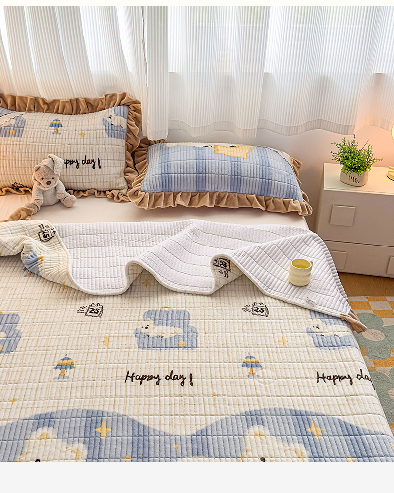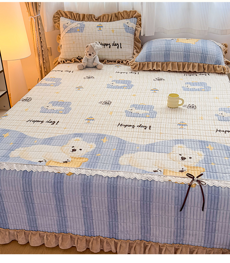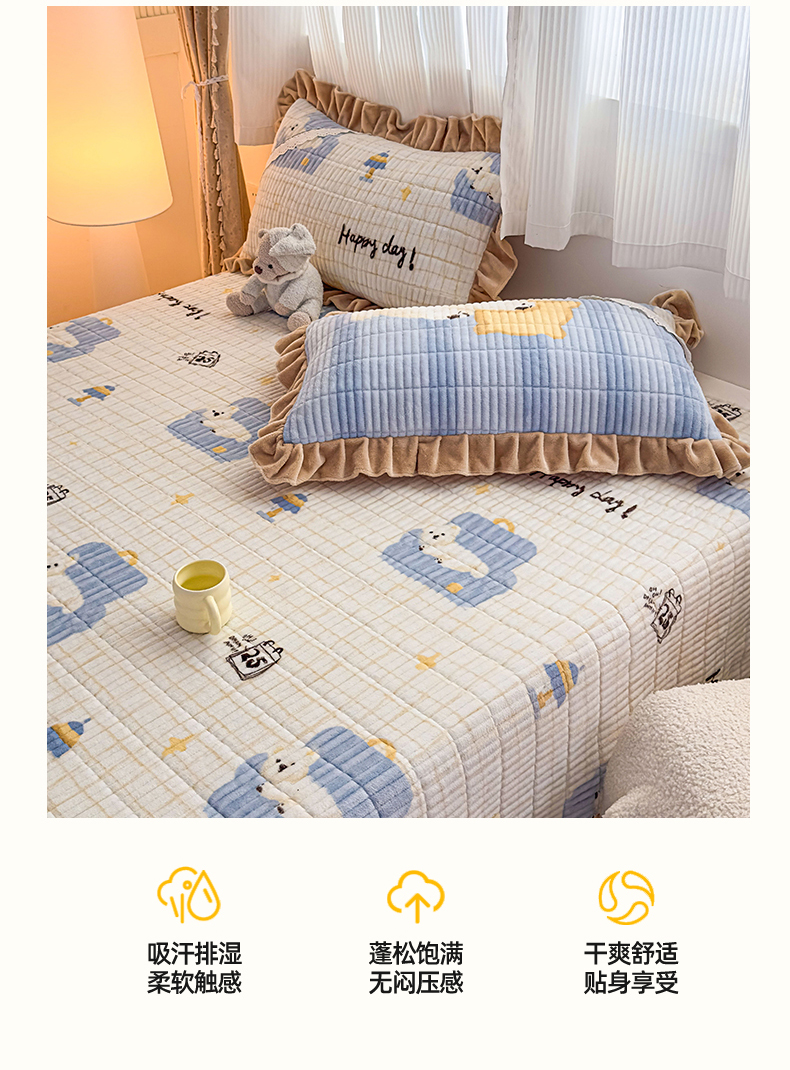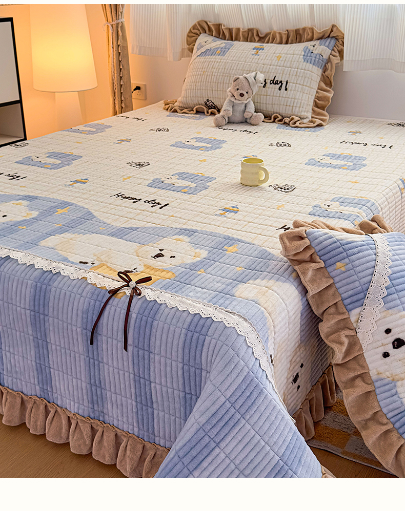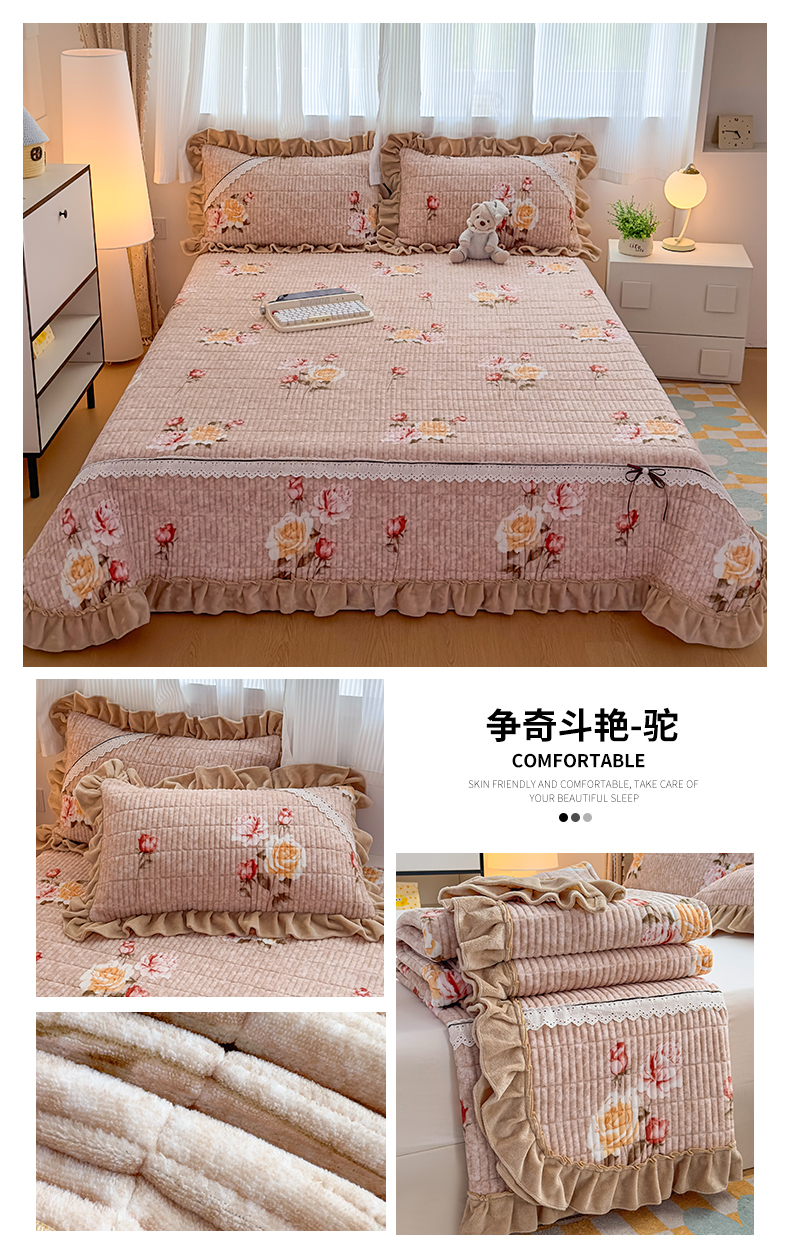 当前位置: 91家纺网 > 商品网购 > 床品套件 > 三件套 > 恒爱家纺 2025新款牛奶绒夹棉花边床盖系列三件套 飞熊入梦