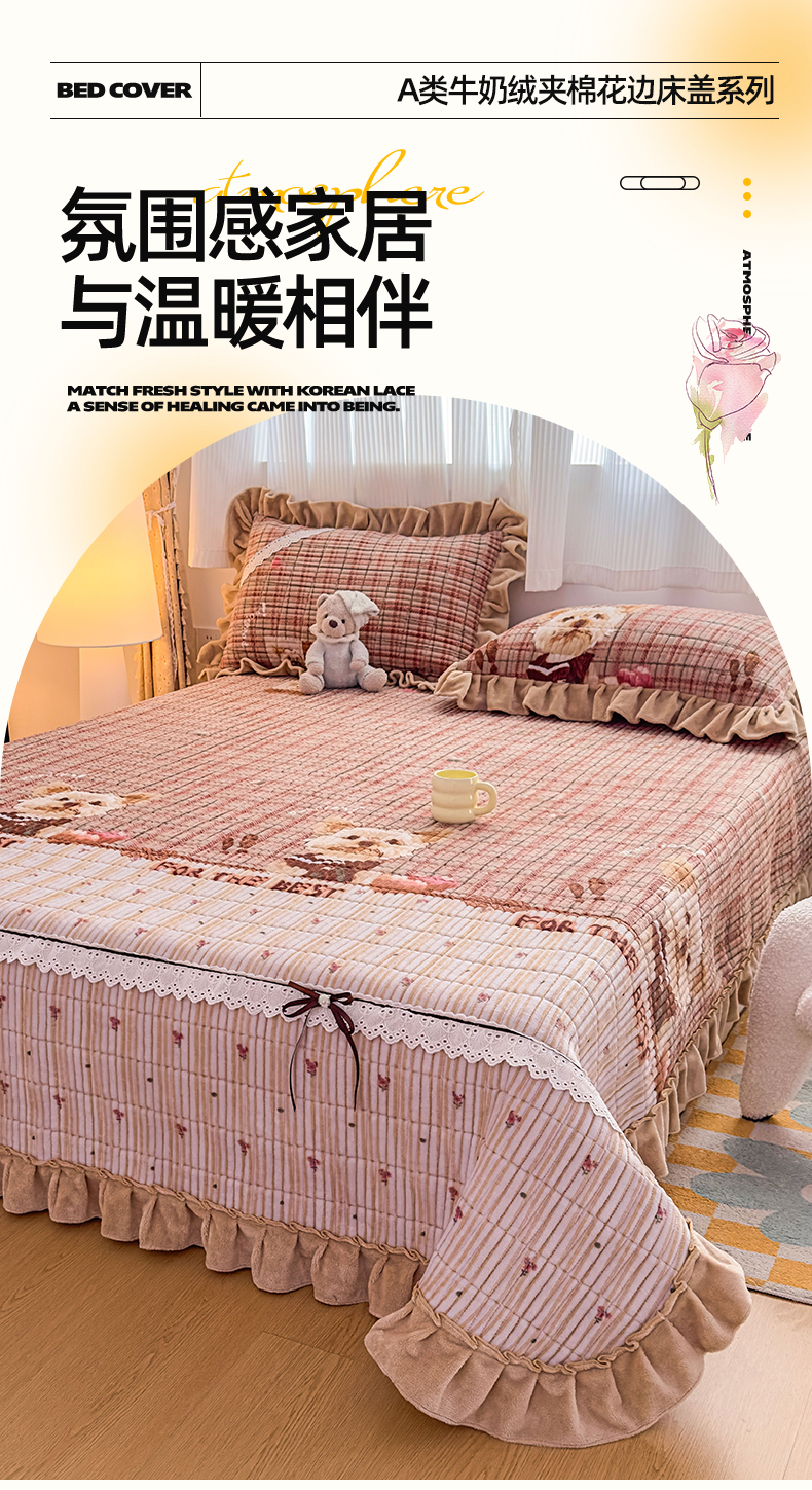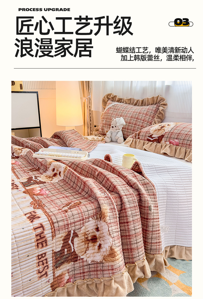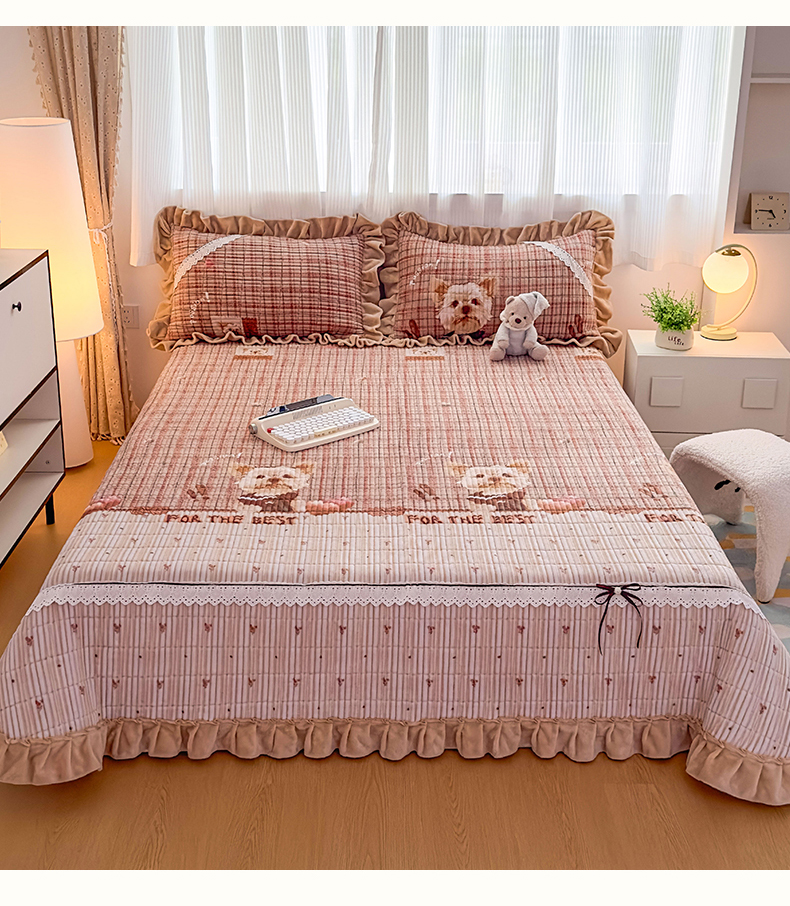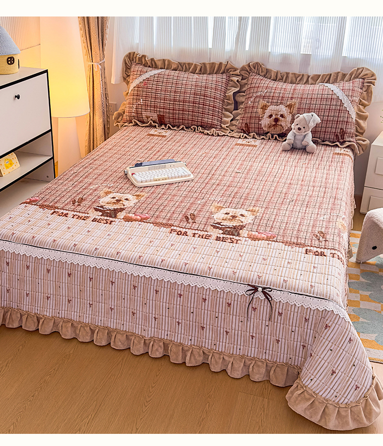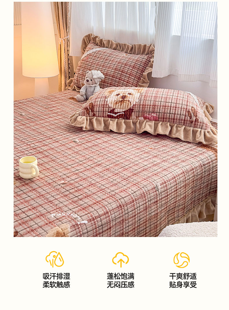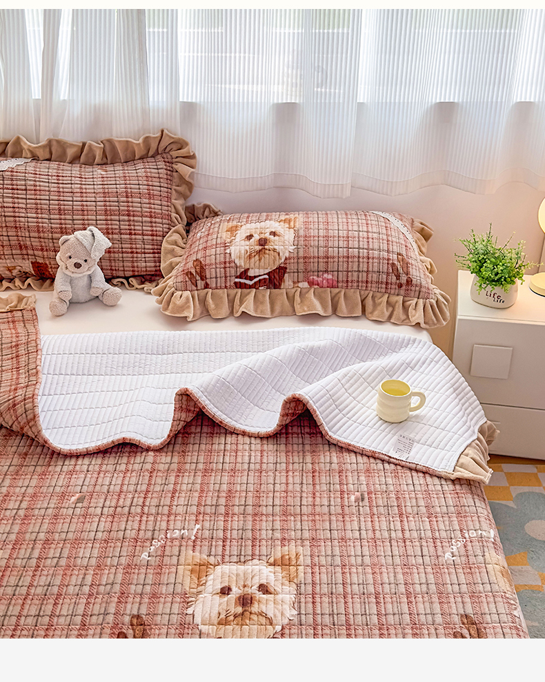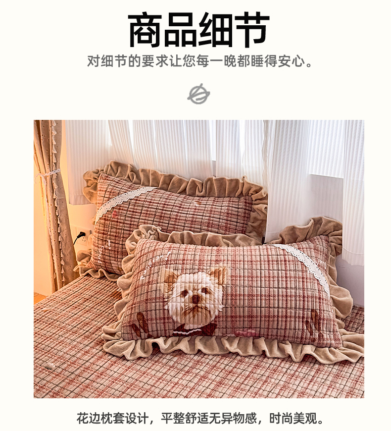 当前位置: 91家纺网 > 商品网购 > 床品套件 > 三件套 > 恒爱家纺 2025新款牛奶绒夹棉花边床盖系列三件套 汪星人