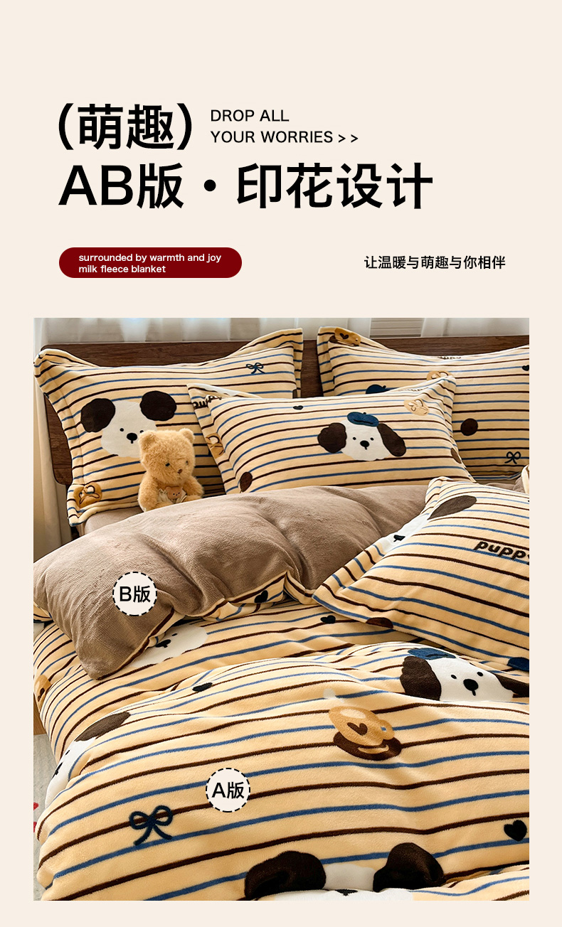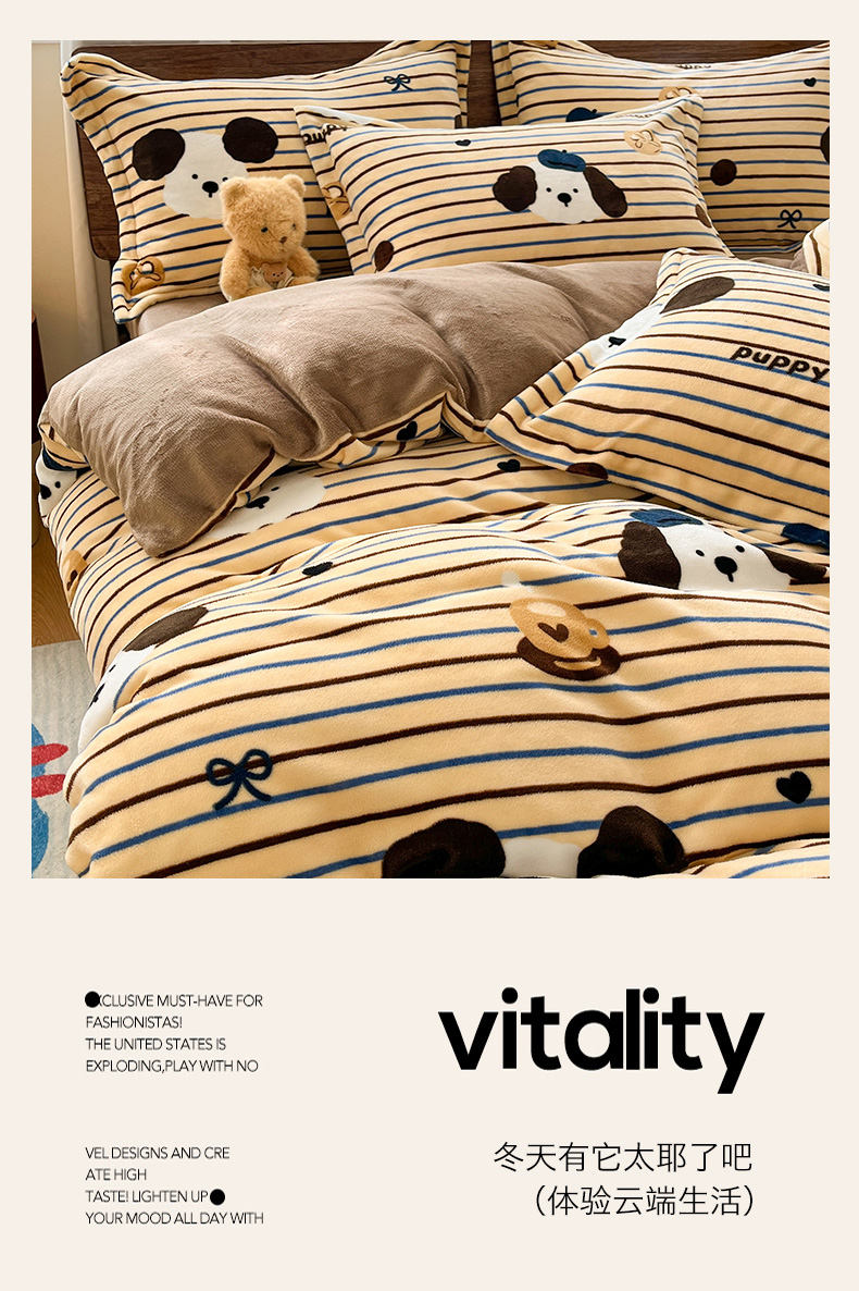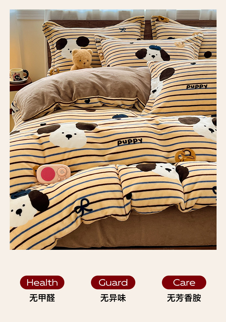 当前位置: 91家纺网 > 商品网购 > 床品套件 > 四件套 > 牛奶绒四件套 > 寻米 2025新款高克重加厚保暖牛奶绒四件套-第一批 海德堡小狗