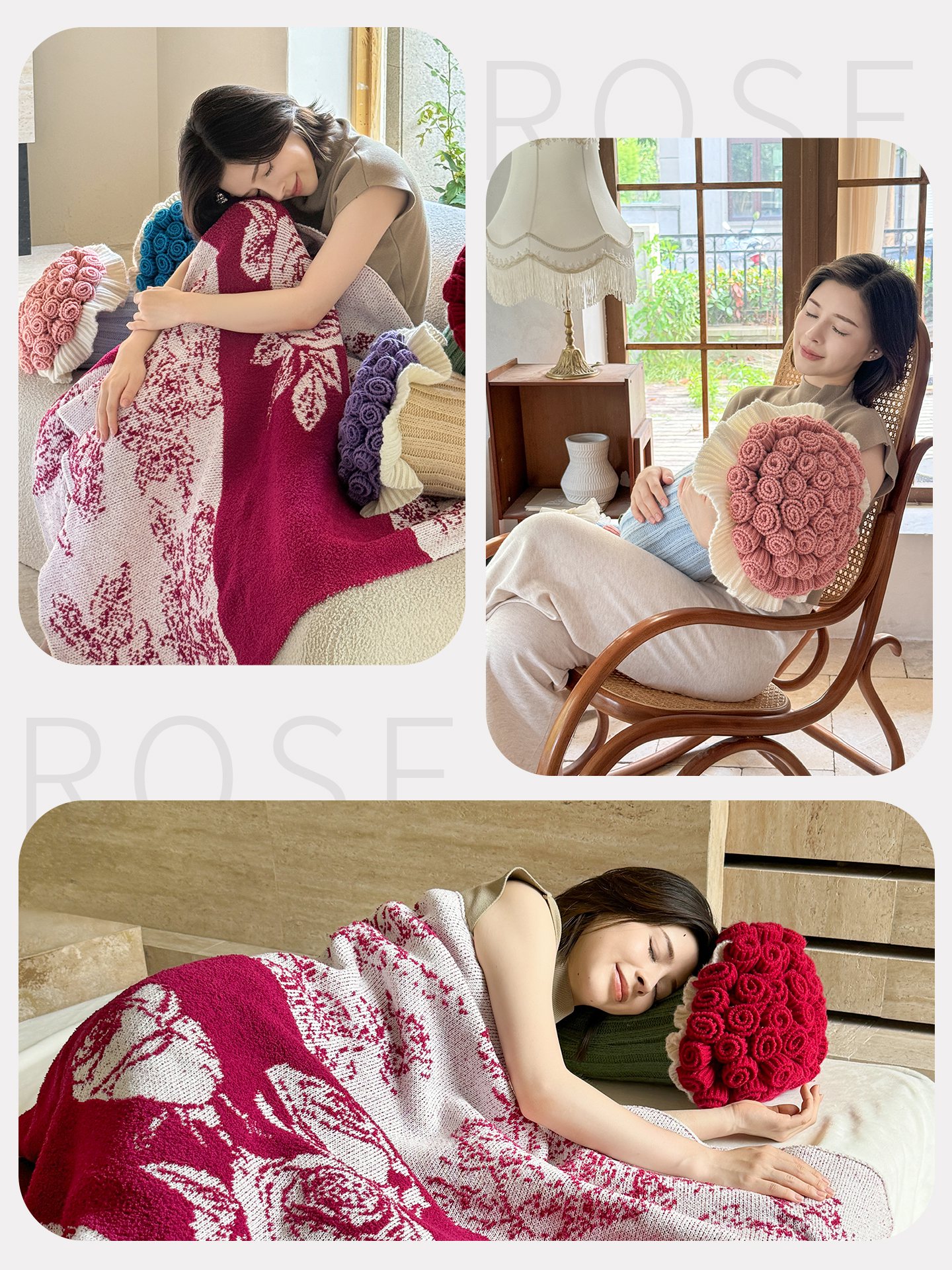(总)梵克保罗 2025新款网红直播热款多功能玫瑰花束抱枕卧室沙发靠枕半边绒针织礼品毯毛毯