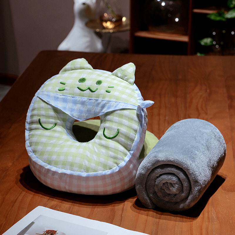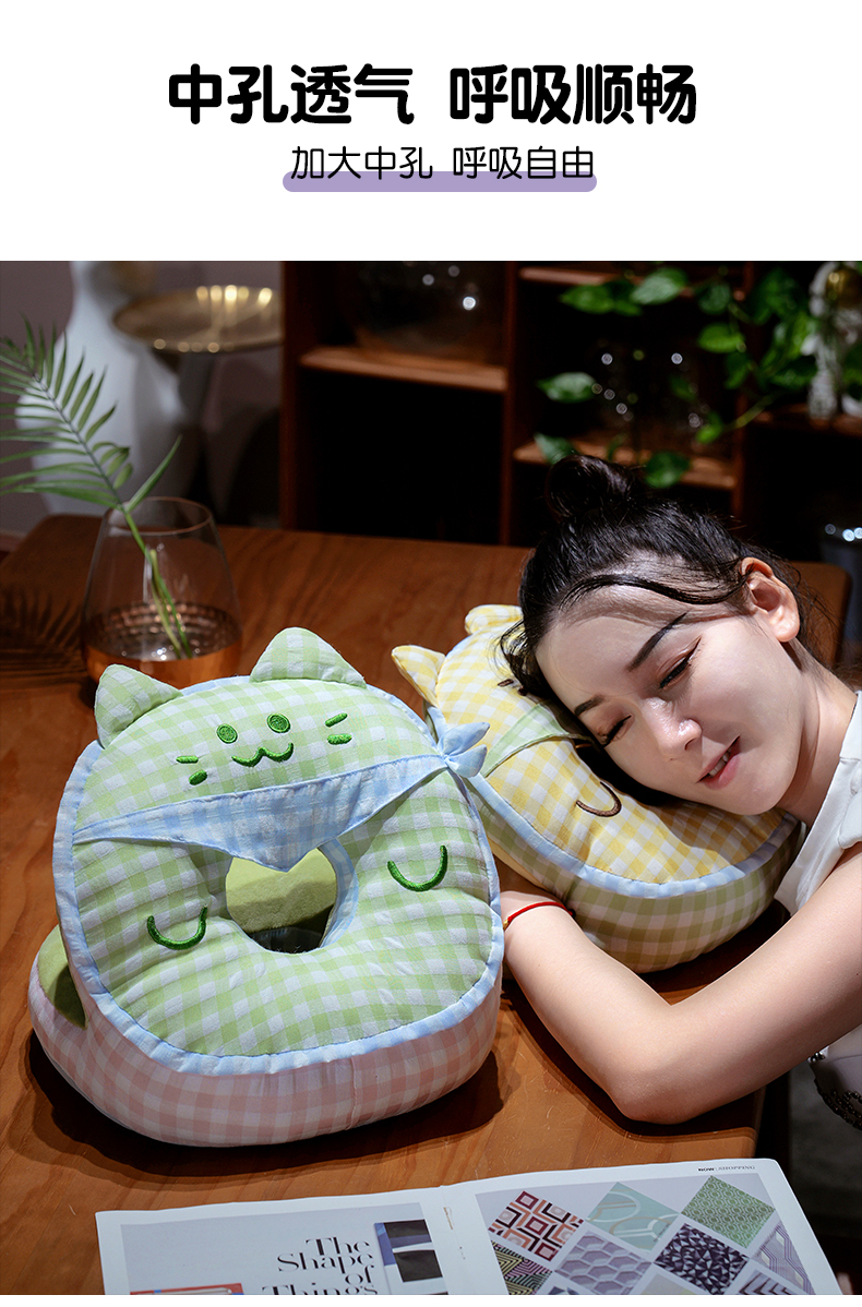 商品名称:仟亿莱 2025新款泡泡纱方巾格子喵双面午睡枕 枕头枕芯 双面方巾黄猫