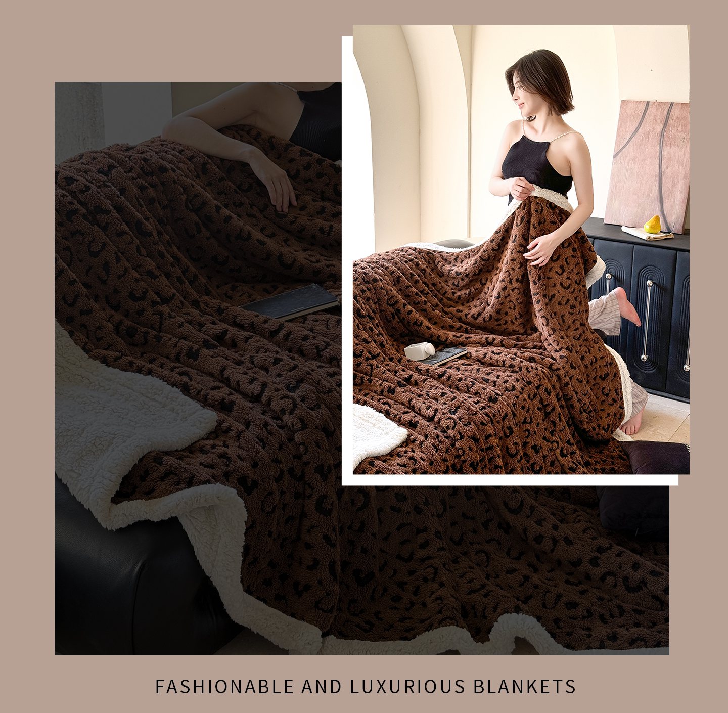 梵克保罗 2025新款双层阳离子豹纹提花塔芙绒羊羔绒跨境双层毛毯盖毯毯子 豹纹咖