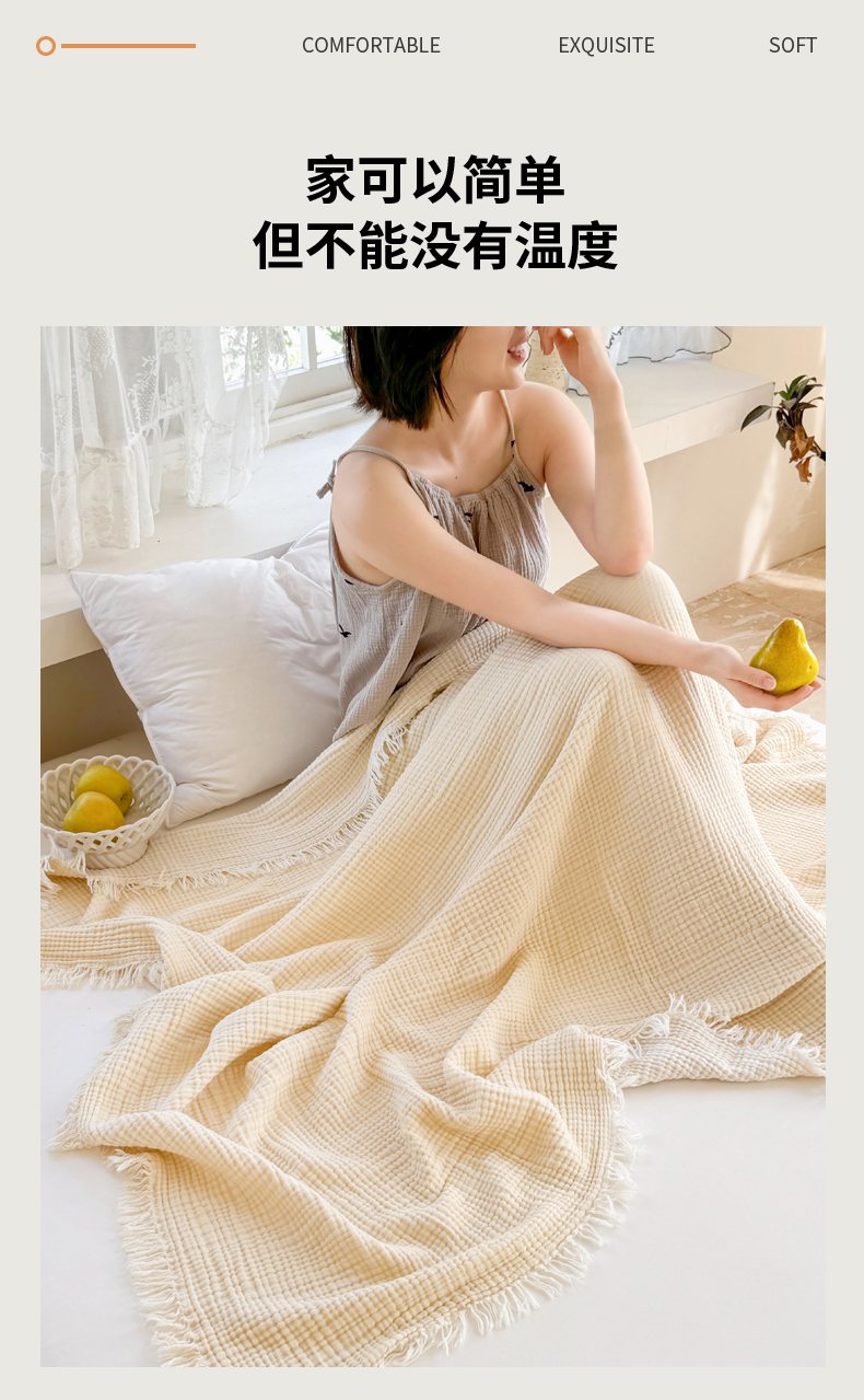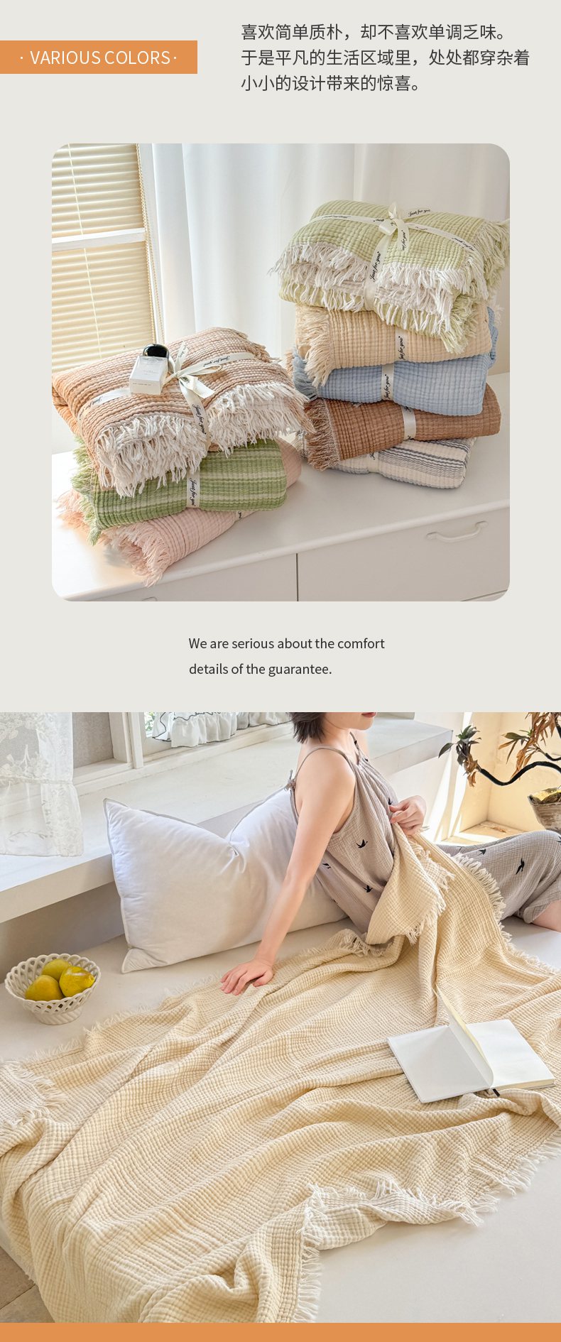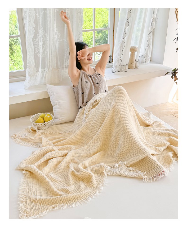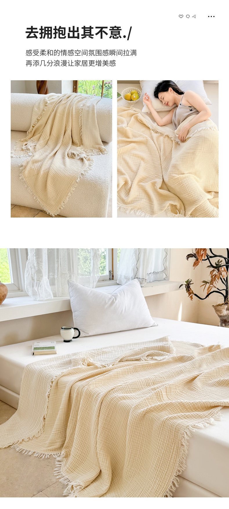 商品名称:梵克保罗 2025新款双层纱流苏全棉纯棉毯纯棉流苏款盖毯毯子夏被夏凉被空调被 米色