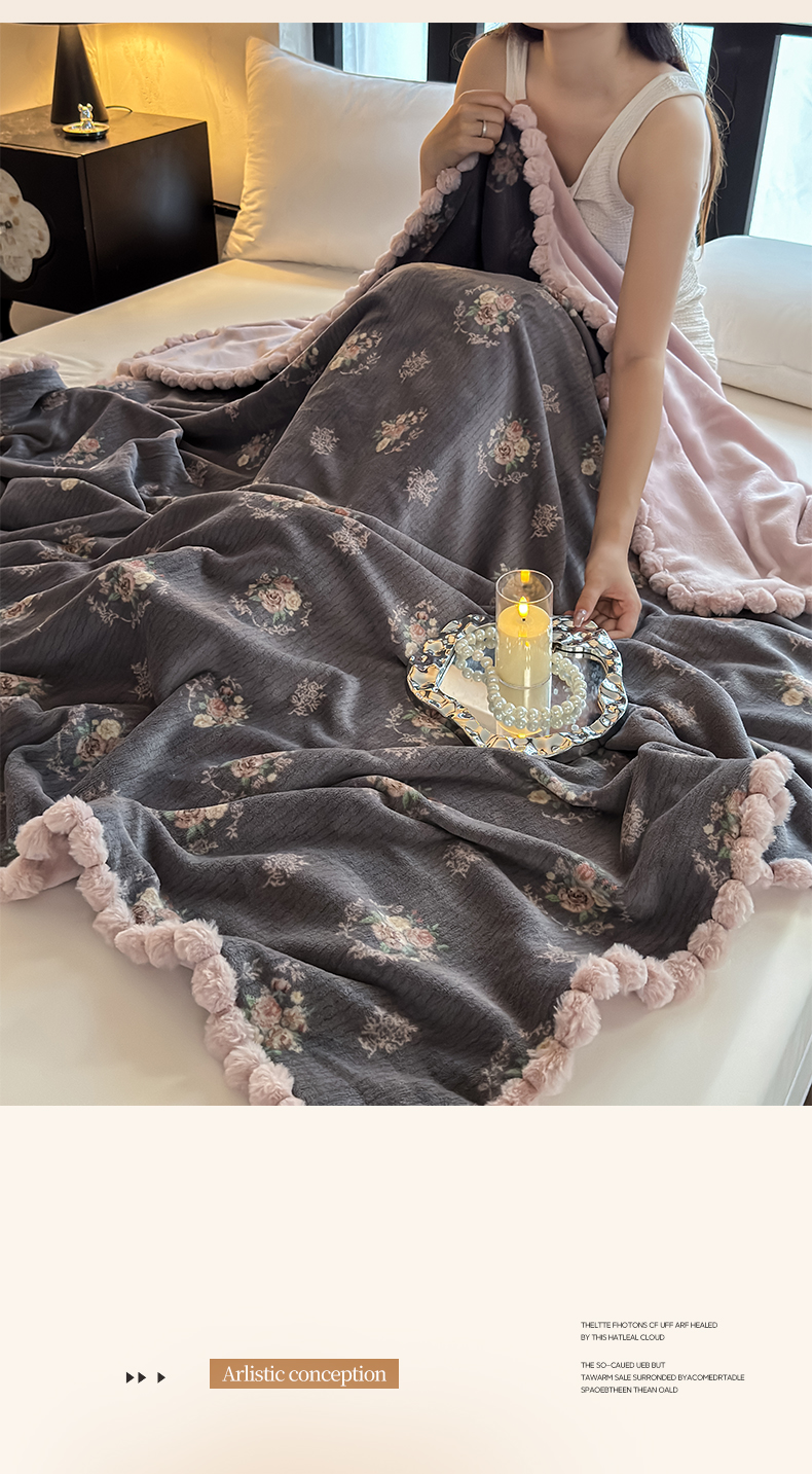 艾咪-Amy ntmy 2025新款毛球款法式复古风牛奶绒双层毯毛毯毯子 香榭