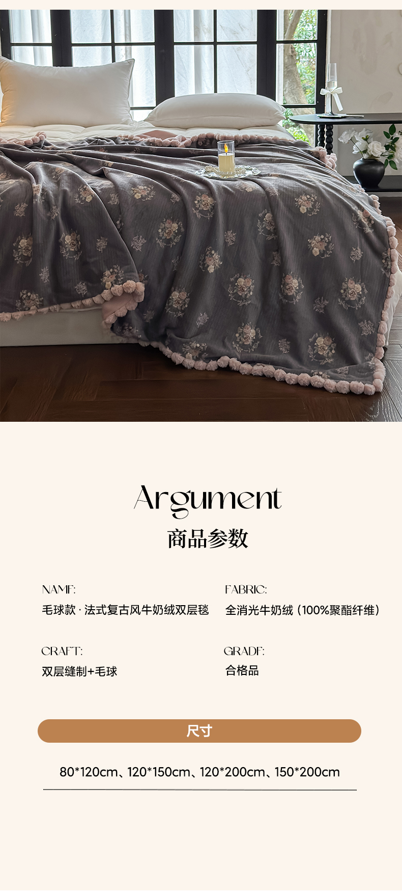 商品名称:艾咪-Amy ntmy 2025新款毛球款法式复古风牛奶绒双层毯毛毯毯子 香榭