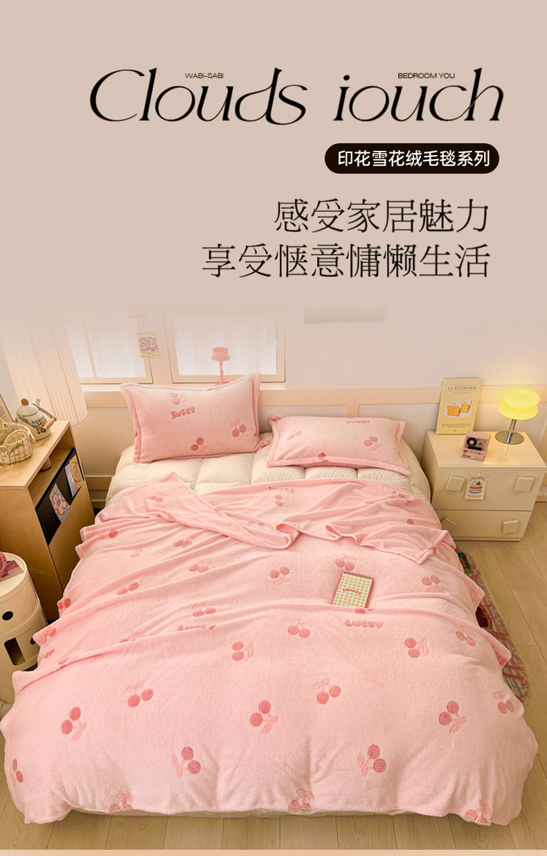 当前位置: 91家纺网 > 商品网购 > 毛毯休闲毯绒毯 > 毛毯 > 川悦生活 2025新款高克重双面雪花绒印花毛毯三件套 毛毯ins樱桃