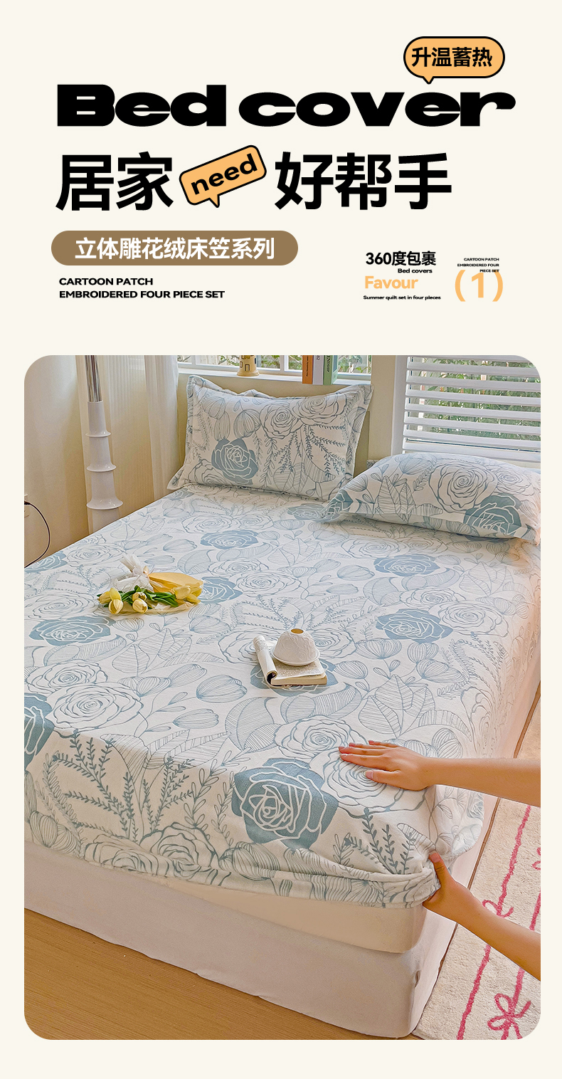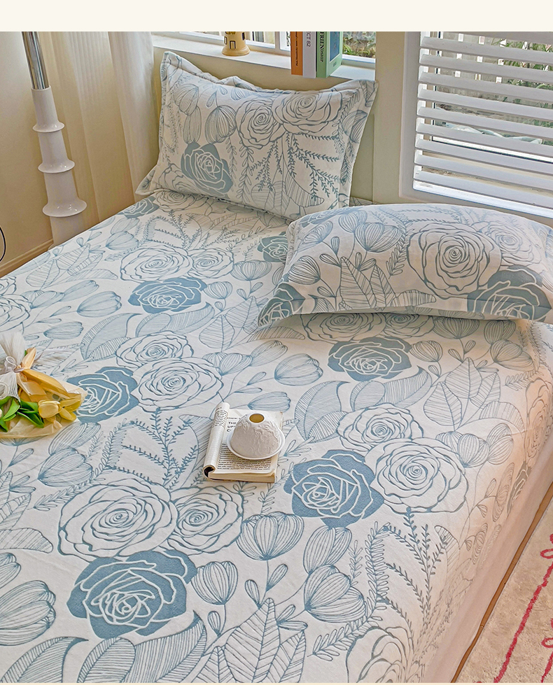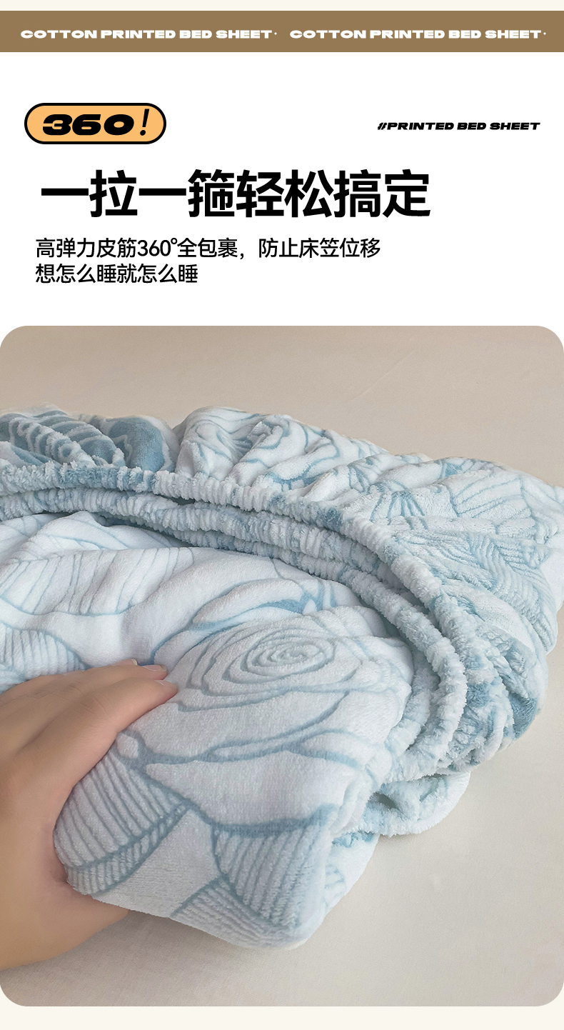 • 91家纺网 家纺一手货源 找家纺 名兮-2025新款立体高克重加厚浮雕绒单床笠款 朵美-蓝