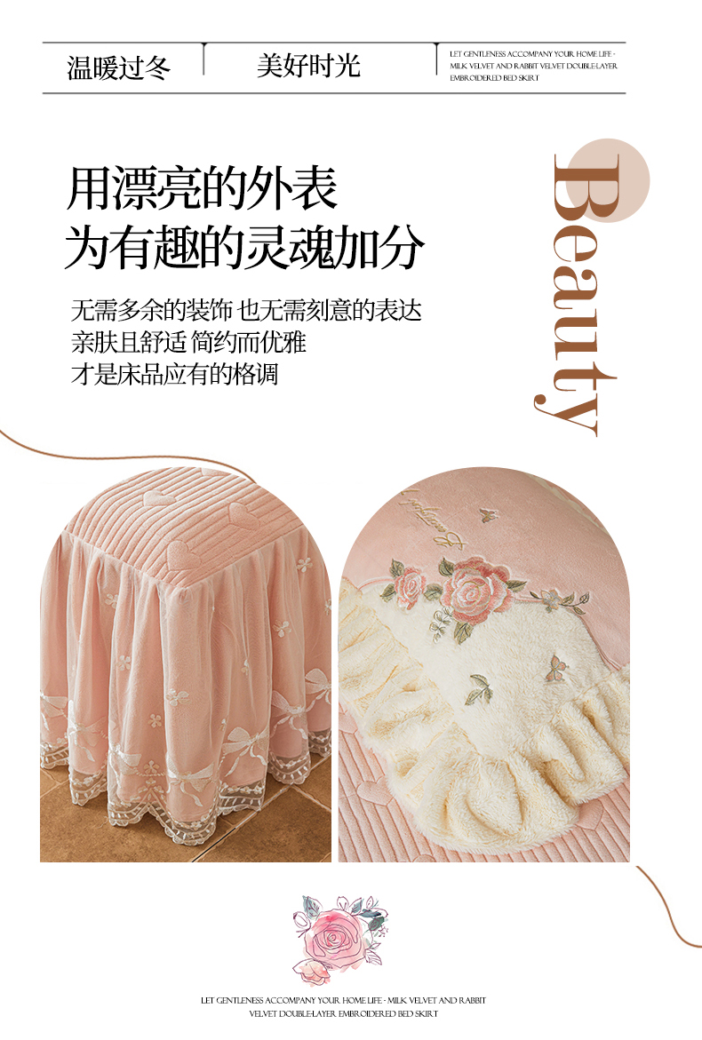 商品名称:宜凡家纺 2025新款牛奶绒贴布兔绒刺绣床裙四件套--淡香伊人系列 淡香伊人-仙女粉