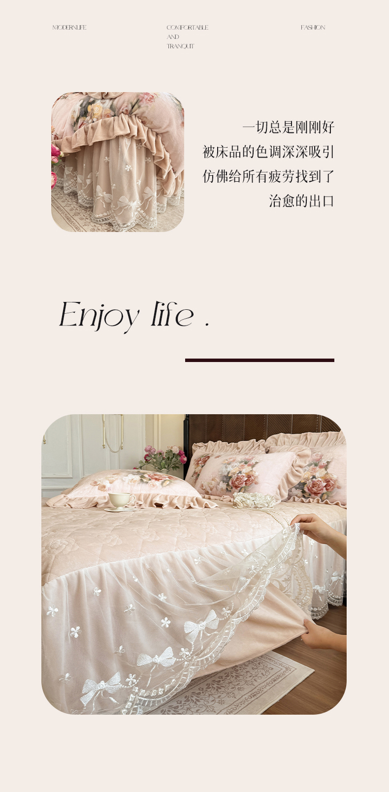 (总)宜凡家纺 2025新款兔绒提花牛奶绒夹棉床裙四件套,爱心 少女粉,爱心 粉紫,爱心 驼色,蝶舞 大红,蝶舞 米色,蝶舞 浅紫,蝶舞 玉色,简爱 苍青,简爱 豆沙紫,简爱 玉色,樱桃 苍青,樱桃 豆沙紫,樱桃 奶油白