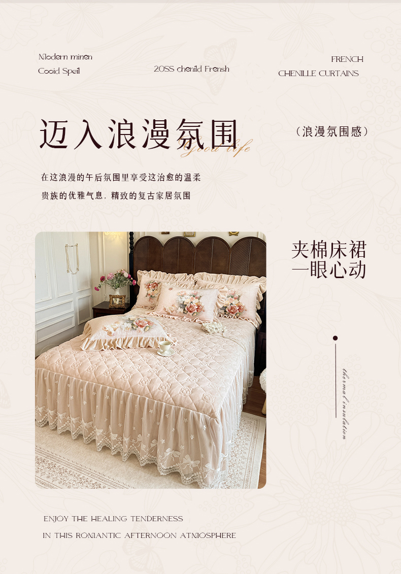 (总)宜凡家纺 2025新款全棉数码印花床裙三件套系列一,静若幽兰,浮云织梦,梦幻花园,陌上花开