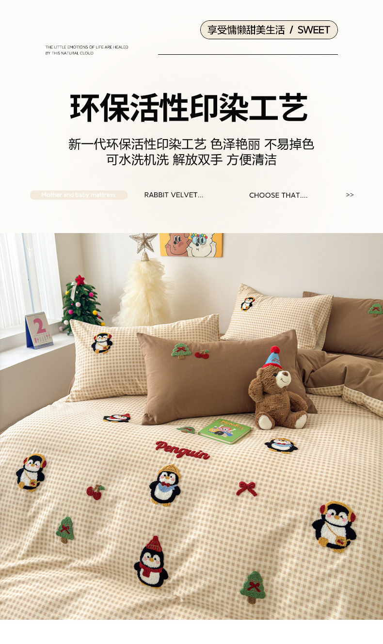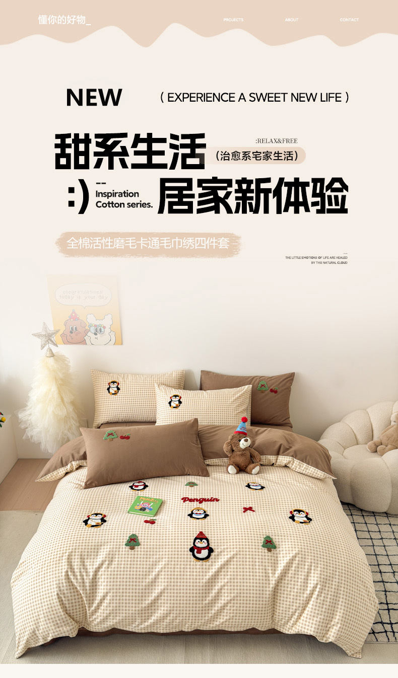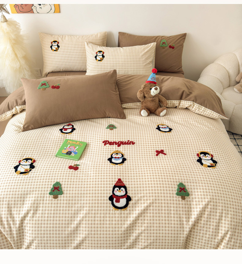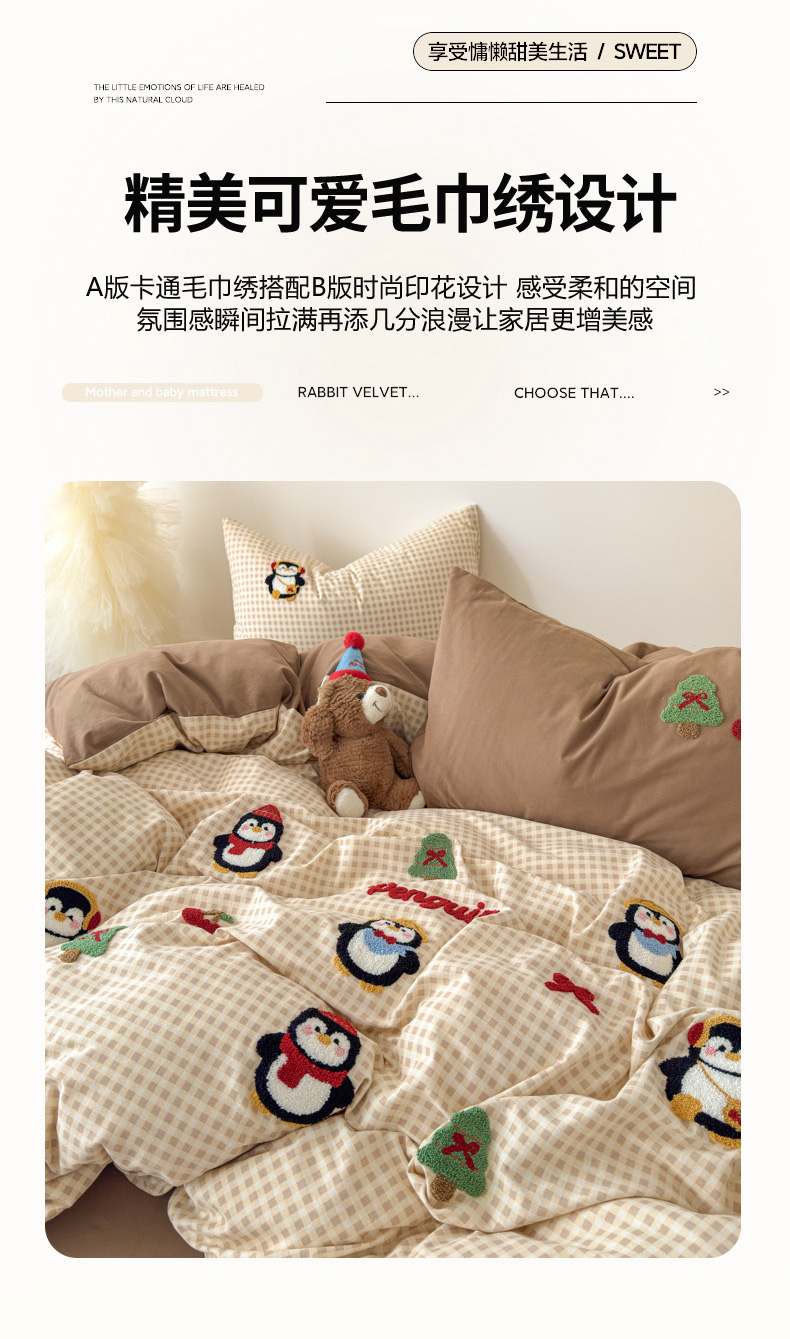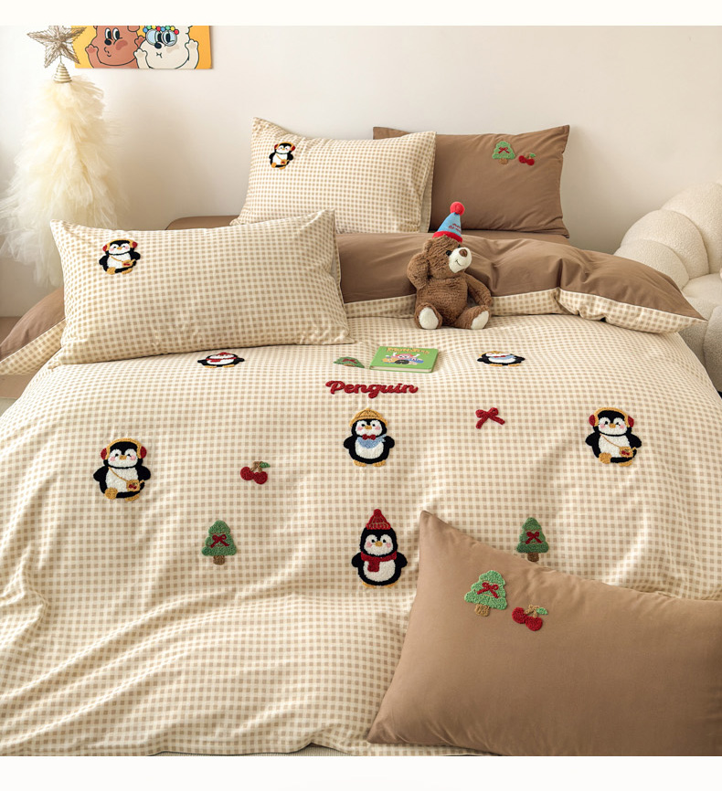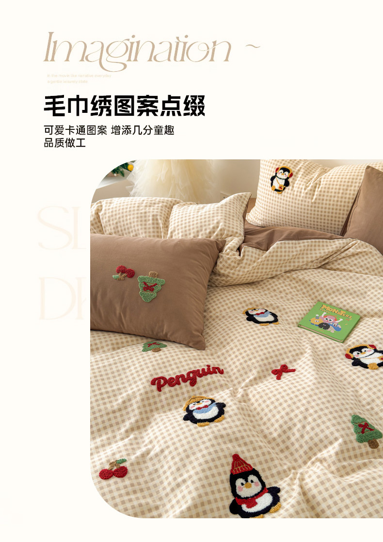 当前位置: 91家纺网 > 商品网购 > 床品套件 > 四件套 > 普通磨毛四件套 > 如意朵 2025新款全棉加厚磨毛毛巾绣四件套(专版花型) 快乐企鹅