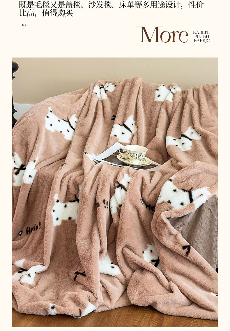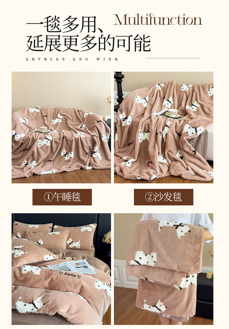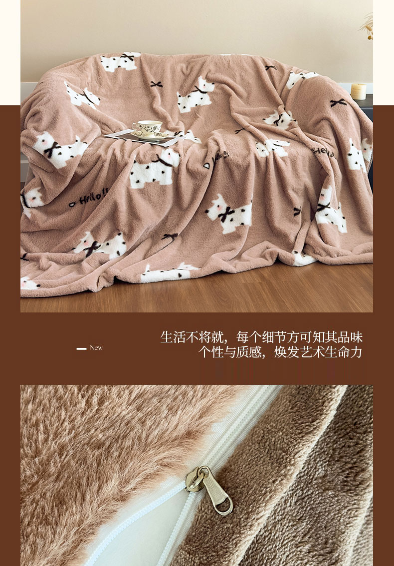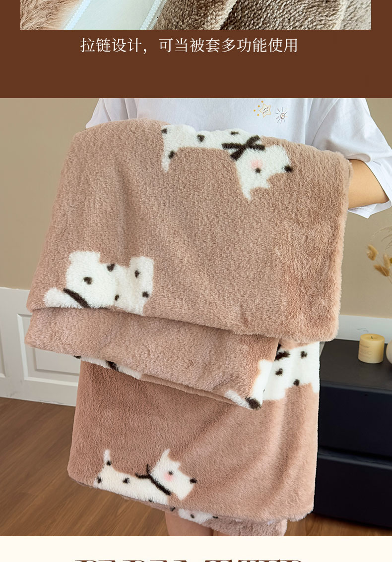 商品名称:璐维斯 2025新款A类兔毛绒双层多功能被套毯带拉链 卡通花卉牛奶绒毛毯秋冬保暖毯子盖毯 可爱狗